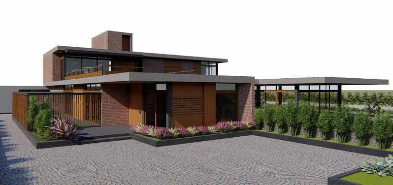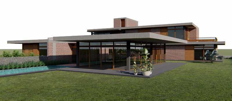A modern 6400 sqft residence crafted in Ahmedabad featuring a sleek and minimal ground-plus-one structure, where exposed brick and RCC elements meet sustainable design. The home seamlessly blends formal and family living, with a sleek beautiful verandah, deck, and tranquil pool, crafting a serene haven for four.