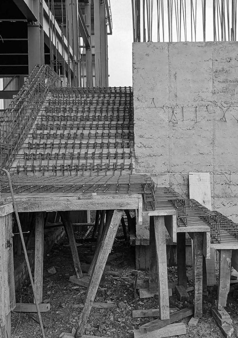 Project Construction stage- Ground floor slab casted, Staircase casted from ground to first floor. Steel column work ongoing.