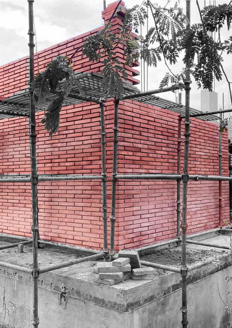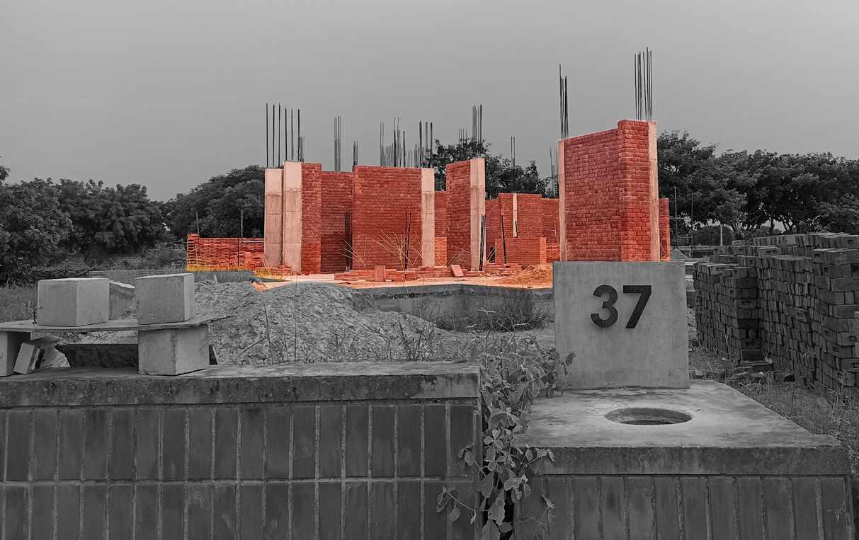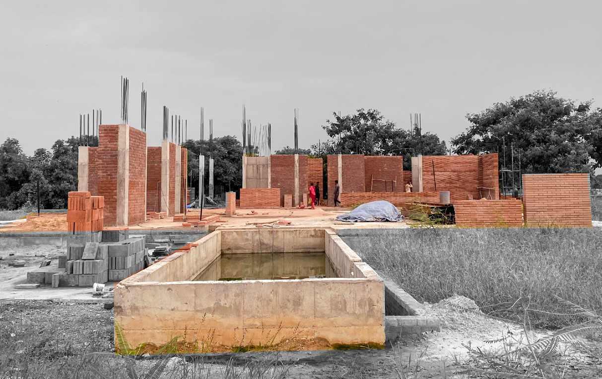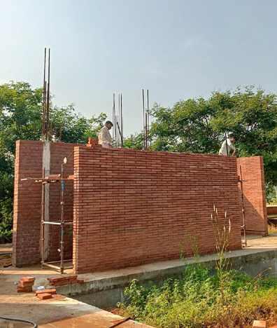 Project Construction Stage- Exposed brick masonary work completed, Steel column work ongoing.
