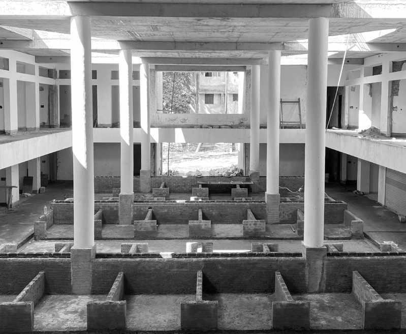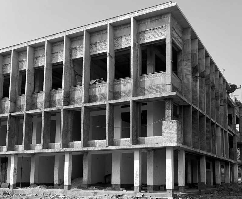 A vibrant commercial space, Panchayat Market, is under construction in Silvassa, featuring three building blocks with some play in the levels adding to its captivating architectural feature with intricate Jaali exteriors. This commercial space will cater to all major vendors of the city , fostering community, commerce, and connection.