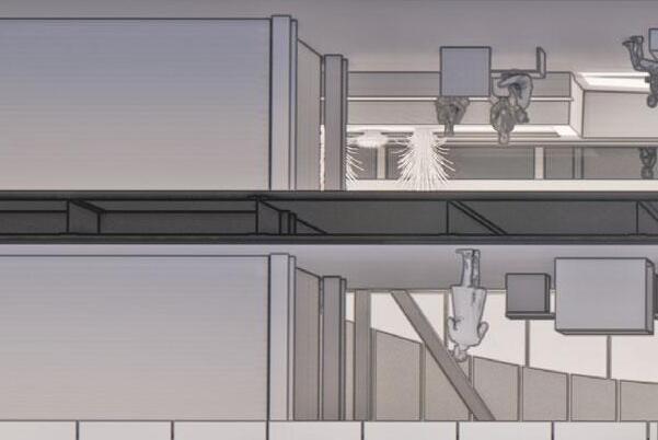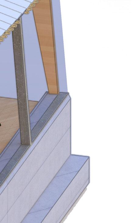 INBETWEEN THESE MEMBERS SUPPORTING A SOFIT SYSTEM, THICK INSULATION, AND A WATER COLLECTION SYSTEM WHICH RUNS IN THE SPINE. THE FLOOR HAS UNDERPANEL WATER HEATING.