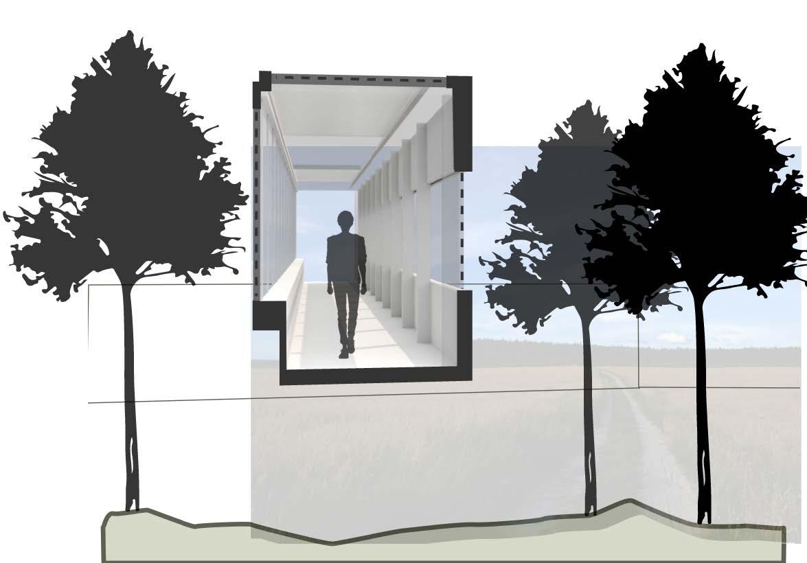 The goal of this project was to bring nature as close to the viewer as possible. the connecting bridge of this project brings viewers on a walk through the trees, closing off their view from the rest of the site while leaving the sky light above open. this creates a meditative walk with close view of the trees.