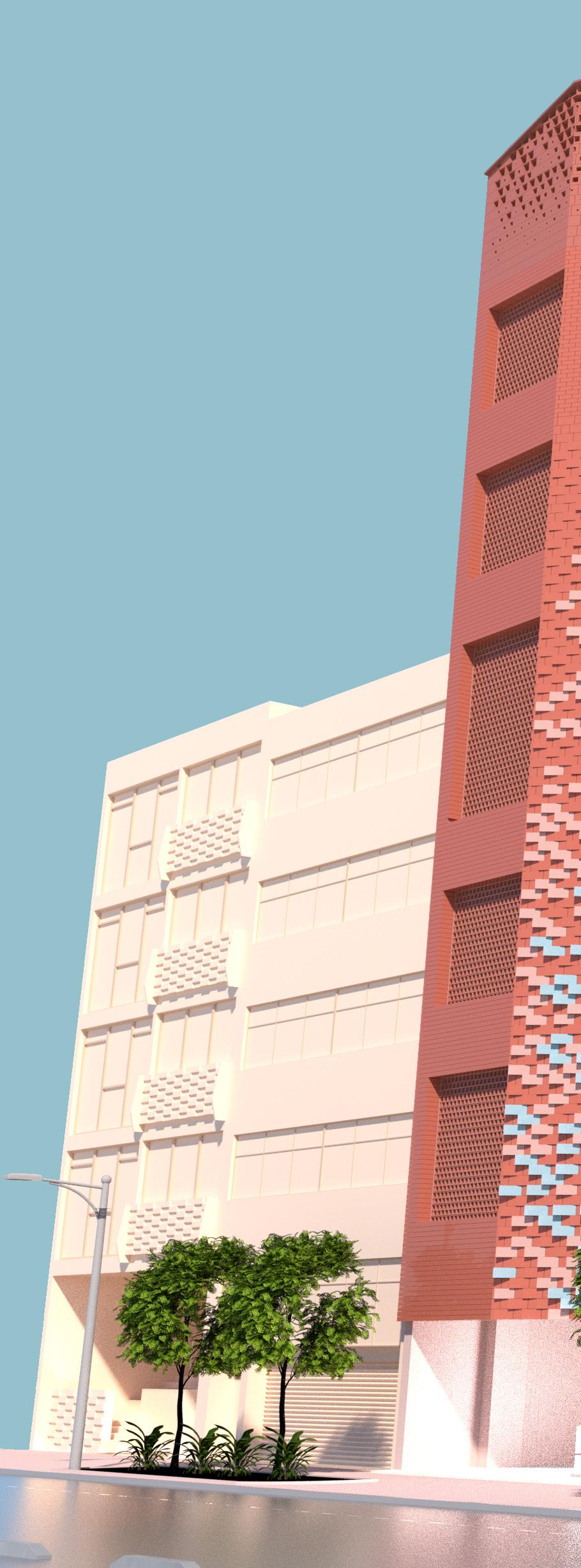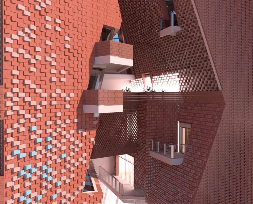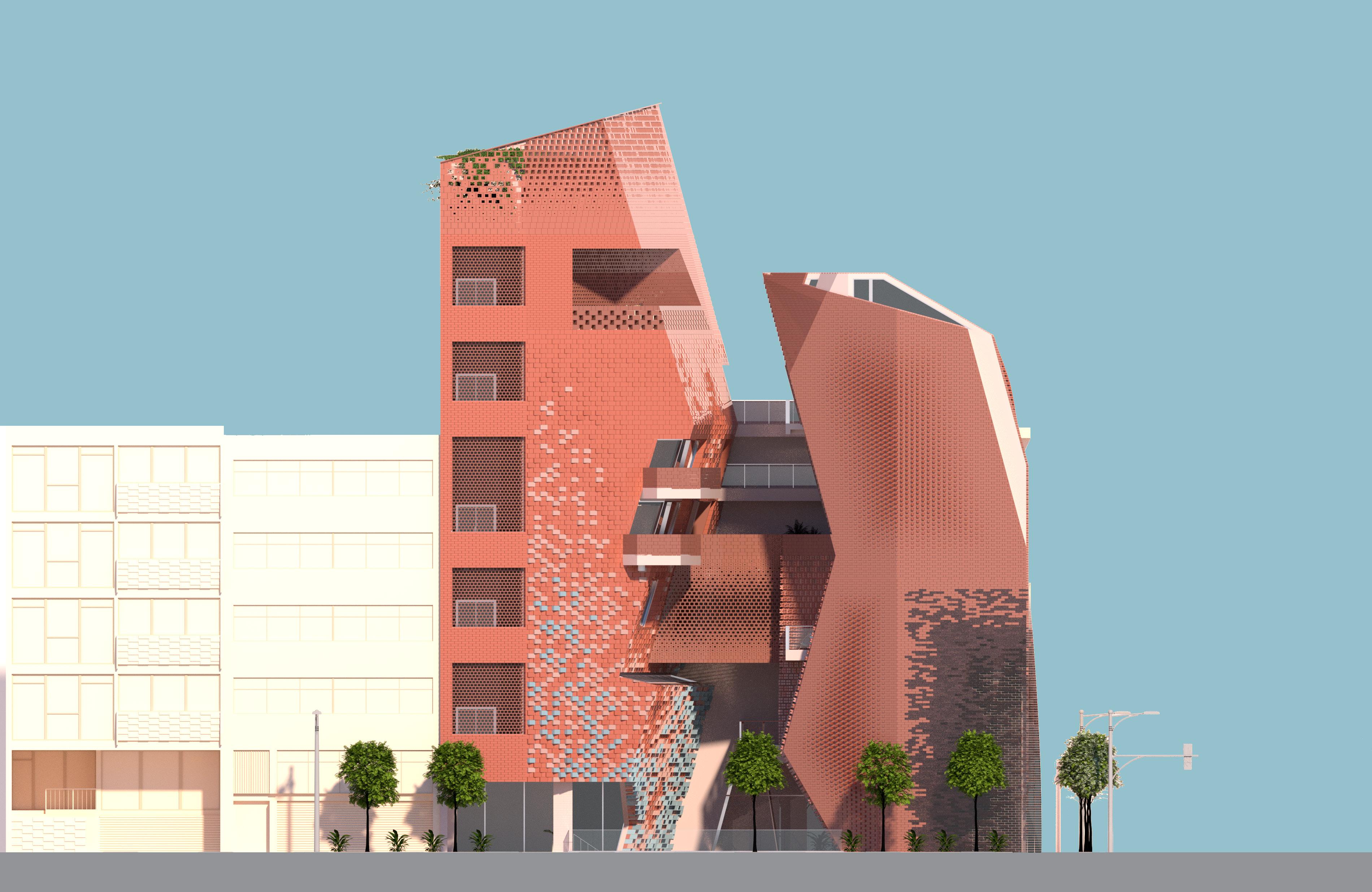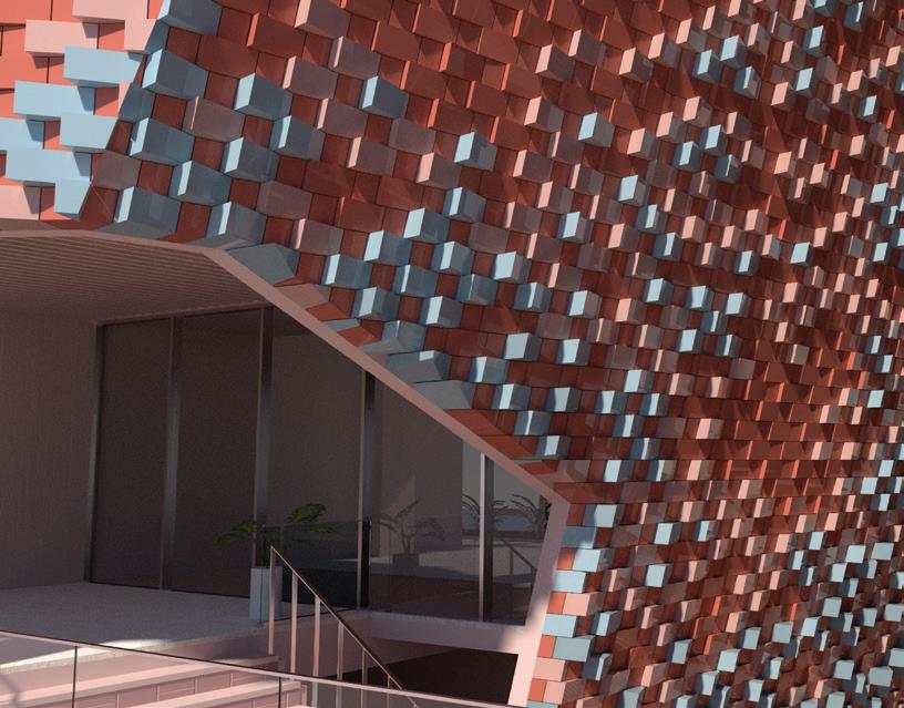 Our strategy aims to maximize the continuity of the brick façade. This involves incorporating hollow bricks of various sizes to visually connect indoor and outdoor spaces. These bricks are strategically placed to rotate based on the street view or light conditions. Additionally, we have extruded bricks of different lengths to create an undulated effect on the flat brick wall, resulting in a dynamic light effect. The bricks in this building are not just simply construction materials that encapsulate indoor space, rather the bricks are the medium that connect the surrounding and environment.