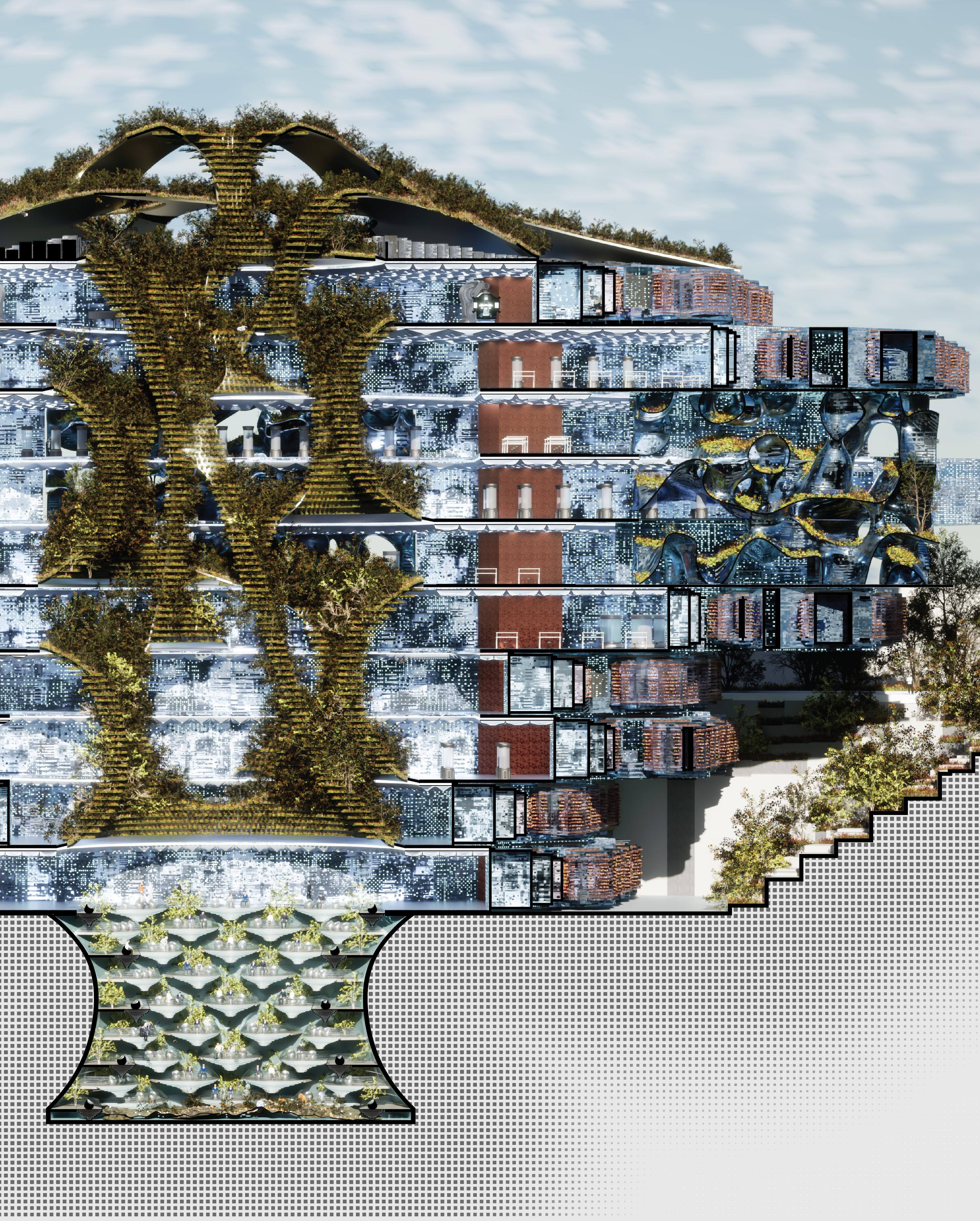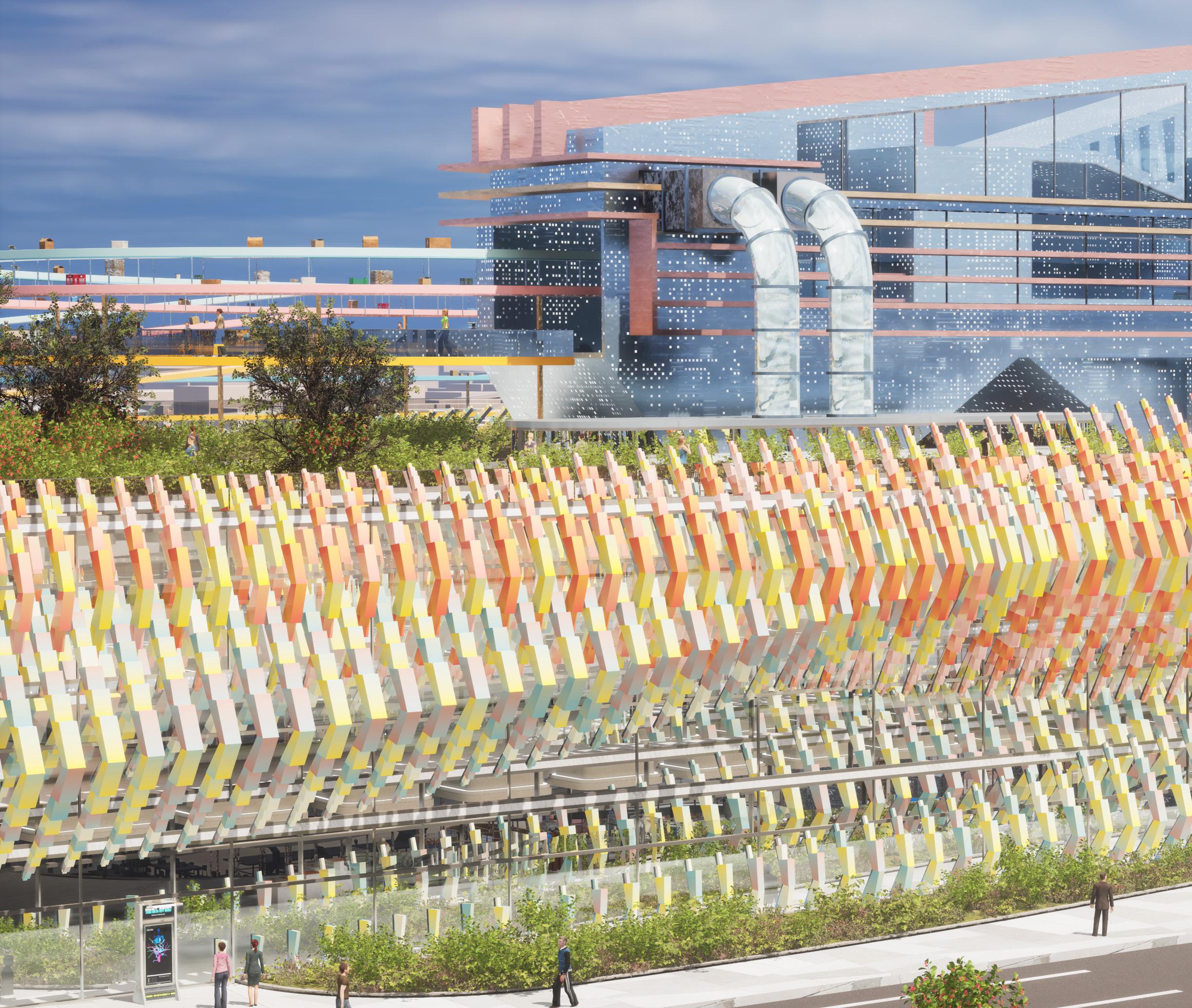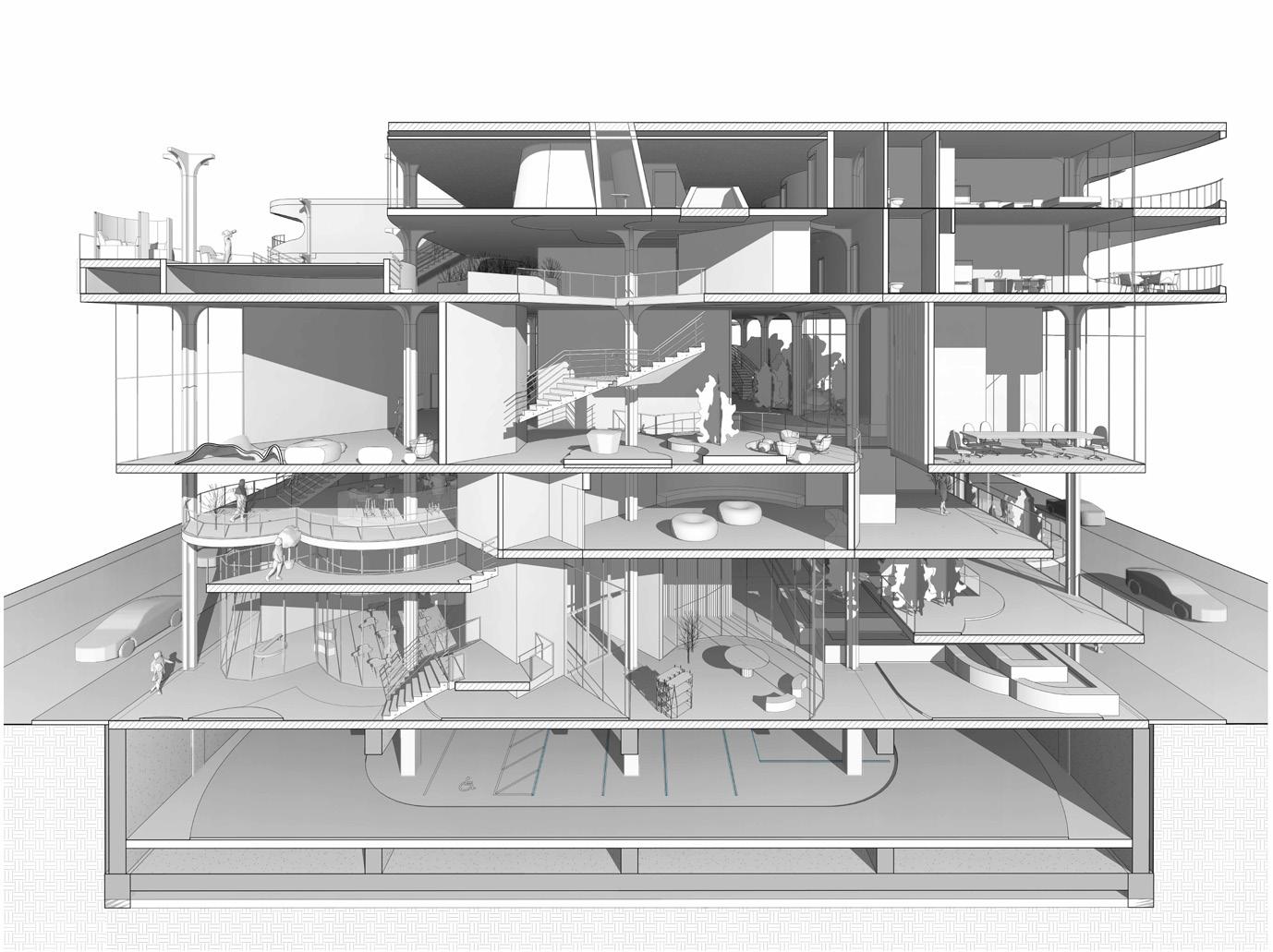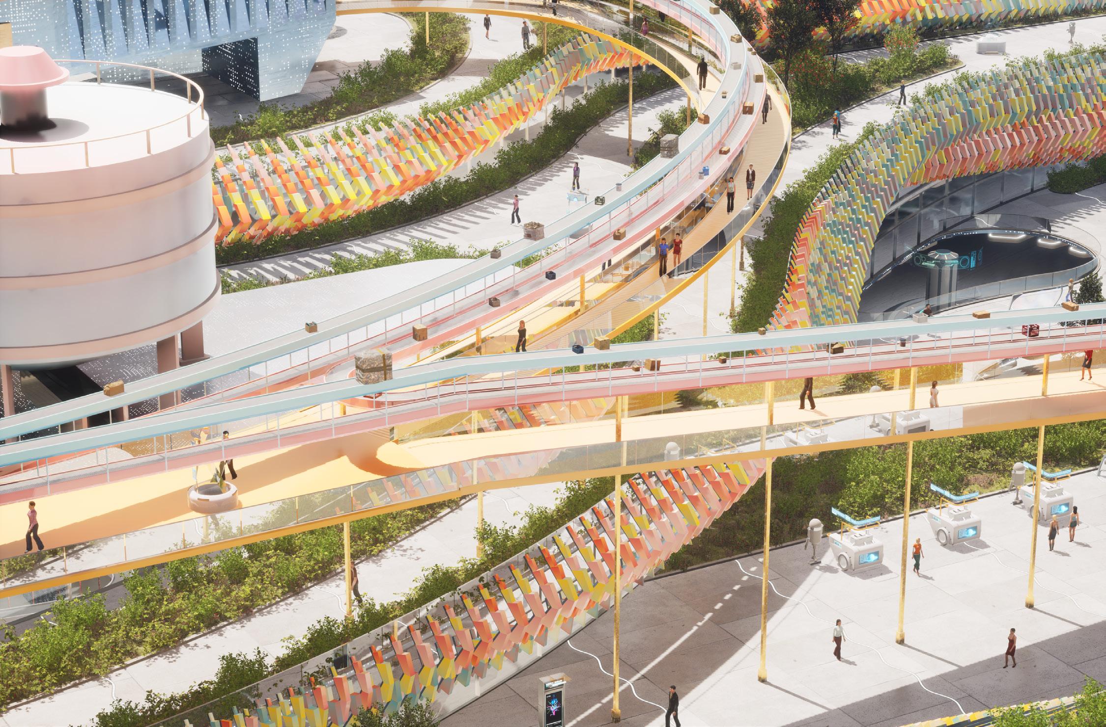 product lifecycles, promotes eco-friendly building practices, and establishes a system for circular production. Consumers are actively involved in giving products a second life, challenging conventional roles of “buying” and “discarding.” The design also accounts for efficient management of workers and machinery, thereby integrating the mall into the broader economic and ecological landscape. This creates a unique, transformative experience for visitors, linking consumption and production as symbiotic aspects of contemporary life. By adopting this approach, the mall can evolve into a hub that connects social, economic, and environmental spheres.
