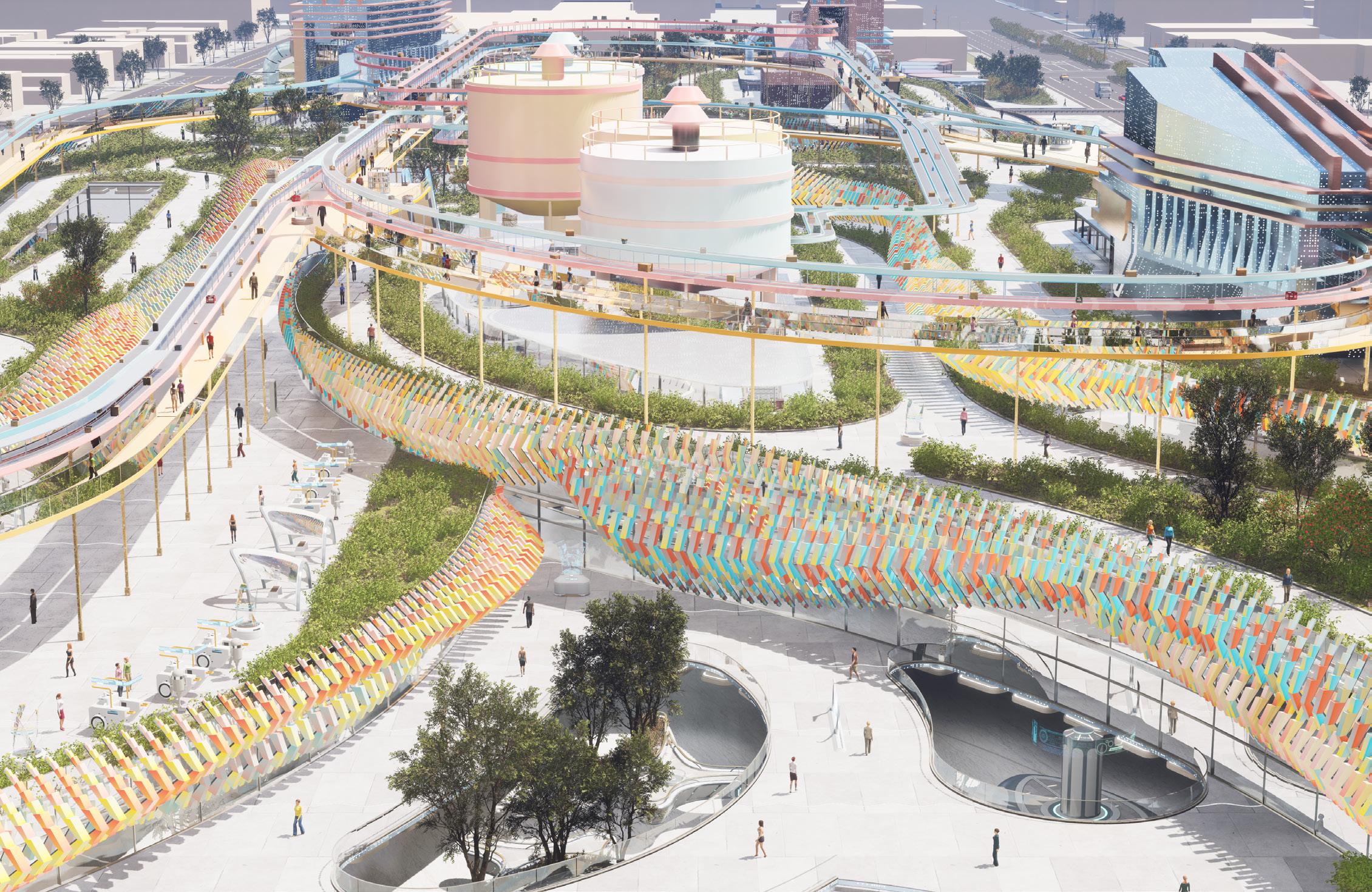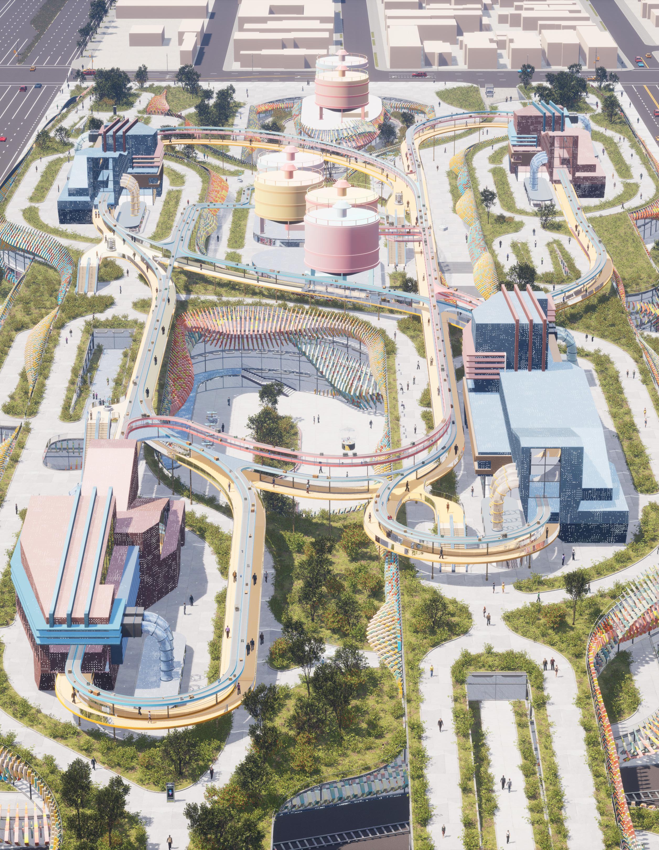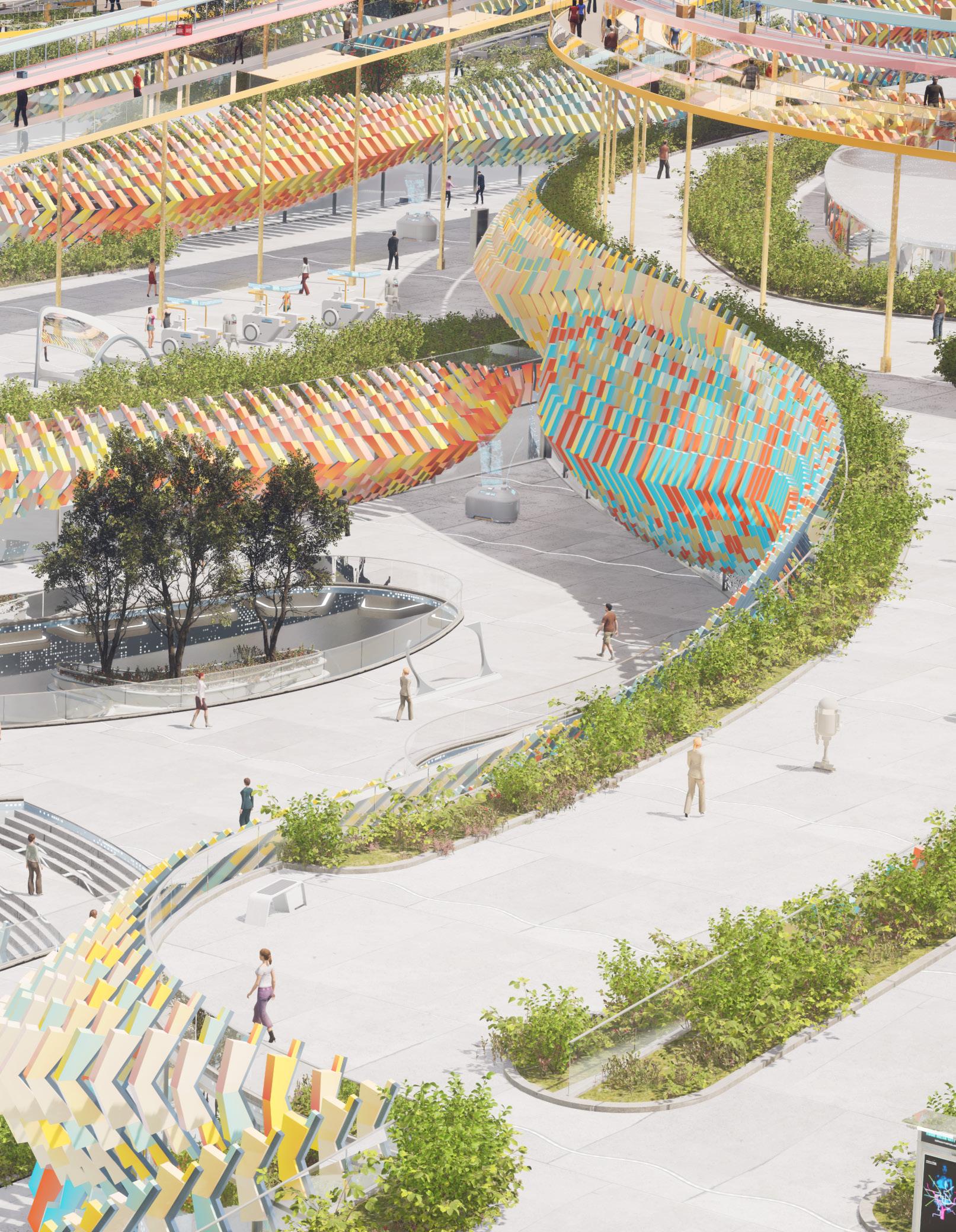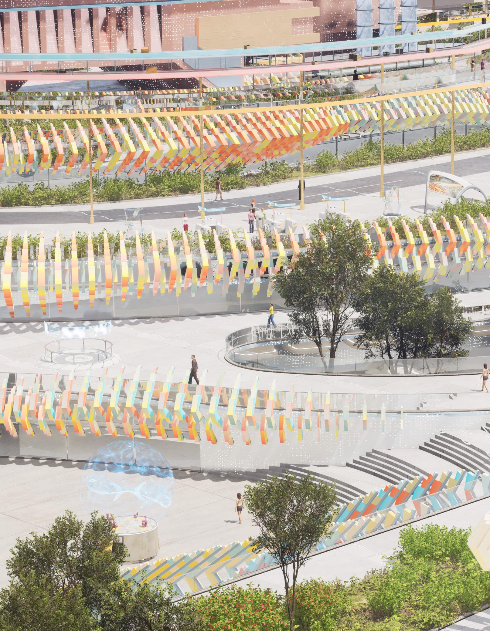 product lifecycles, promotes eco-friendly building practices, and establishes a system for circular production. Consumers are actively involved in giving products a second life, challenging conventional roles of “buying” and “discarding.” The design also accounts for efficient management of workers and machinery, thereby integrating the mall into the broader economic and ecological landscape. This creates a unique, transformative experience for visitors, linking consumption and production as symbiotic aspects of contemporary life. By adopting this approach, the mall can evolve into a hub that connects social, economic, and environmental spheres.