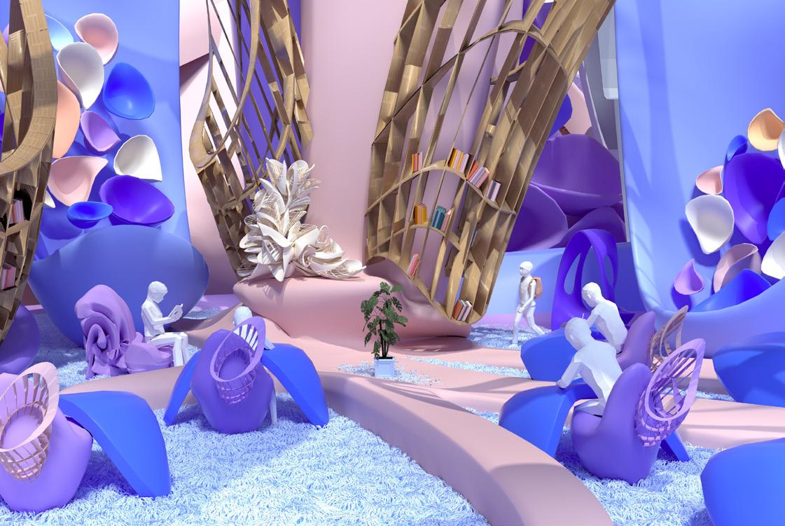 Nature-inspired chairs created by deforming and generating the form of a cylinder. We tried to look at our chairs as space and classrooms. The curved lines have become flower-like spaces which host classrooms. Different shapes with multitaxonomics combine together. Along with different geometry, each part has a special function as school places in outdoor and indoor.