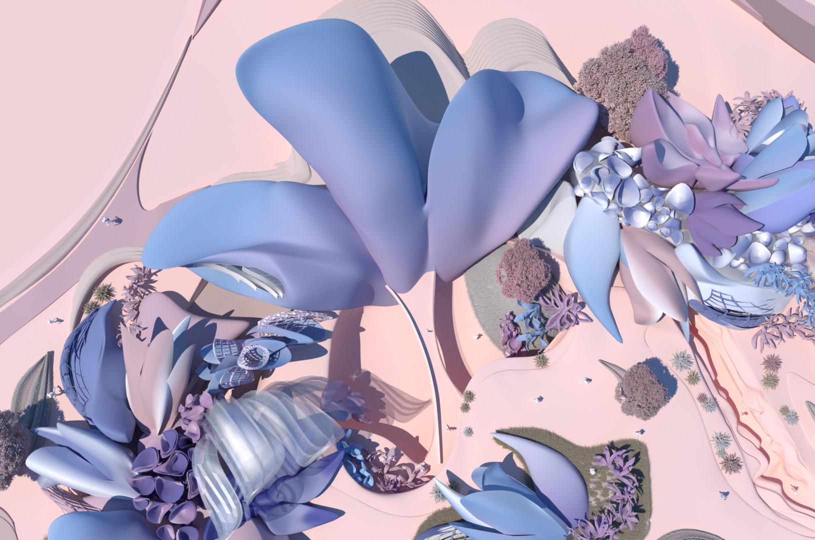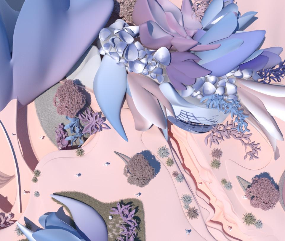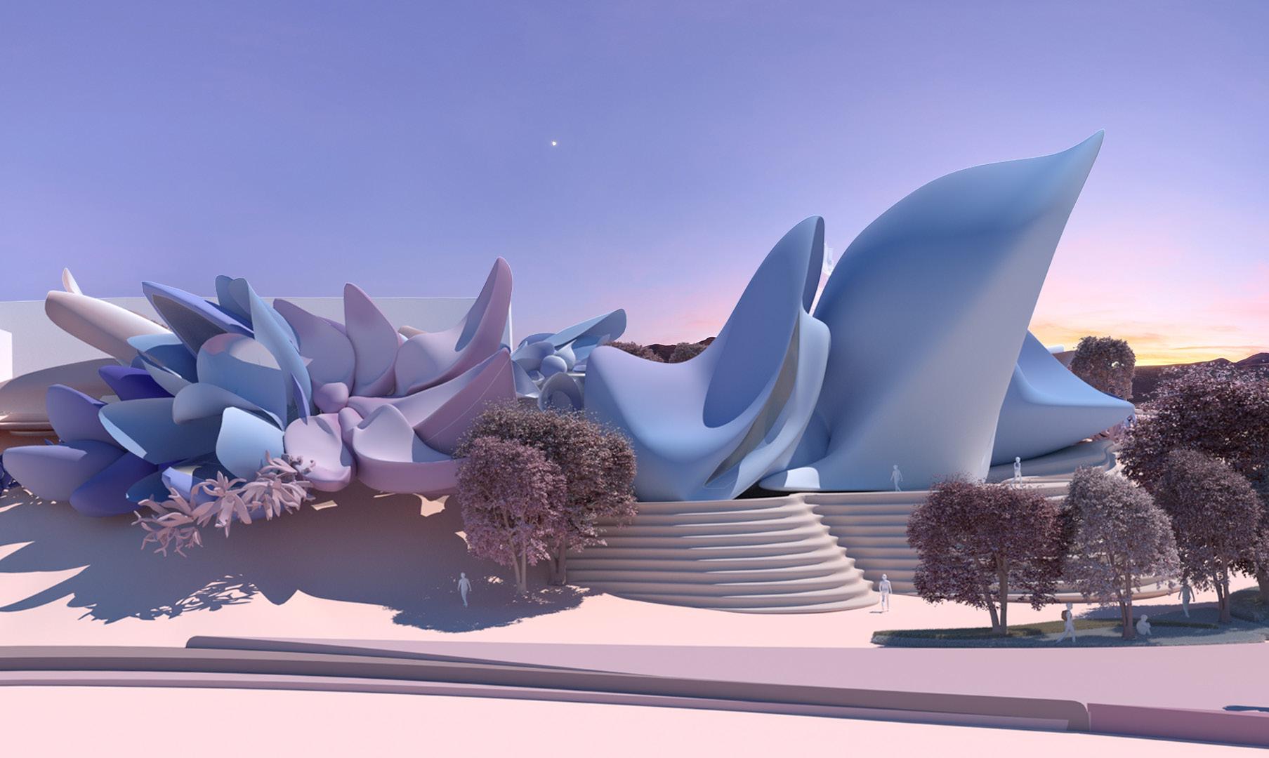 Instead of blocky, geometric looking structures, school be created light, flowing, organically rounded shaped structures based on the shape of flowers.