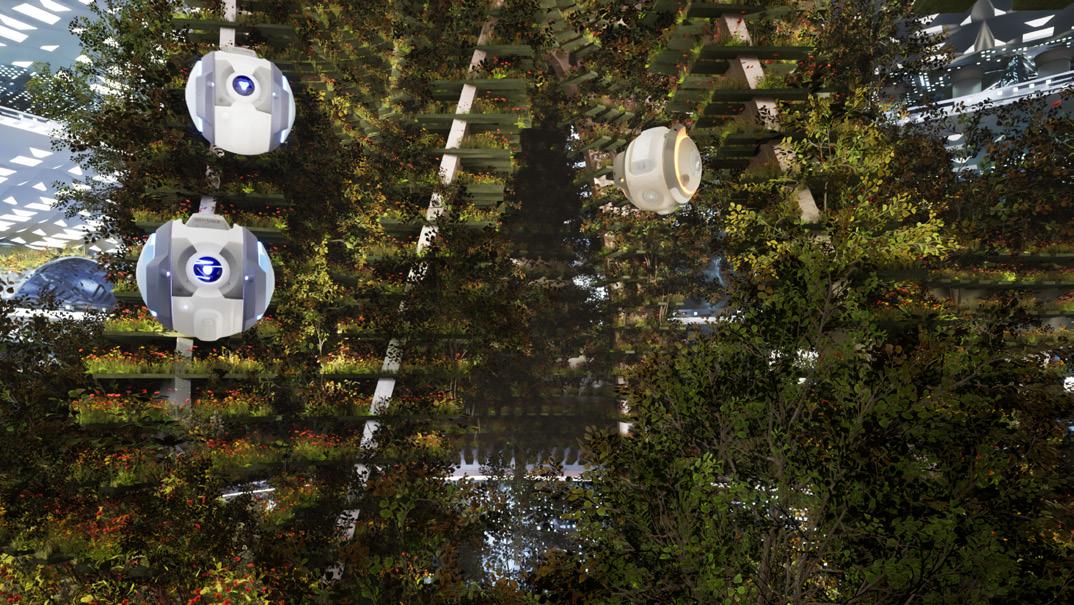 The bottom of the parliament accommodates fungi, agents, and animals. The biotech allows them to live together in a cooperative symbiotic way.