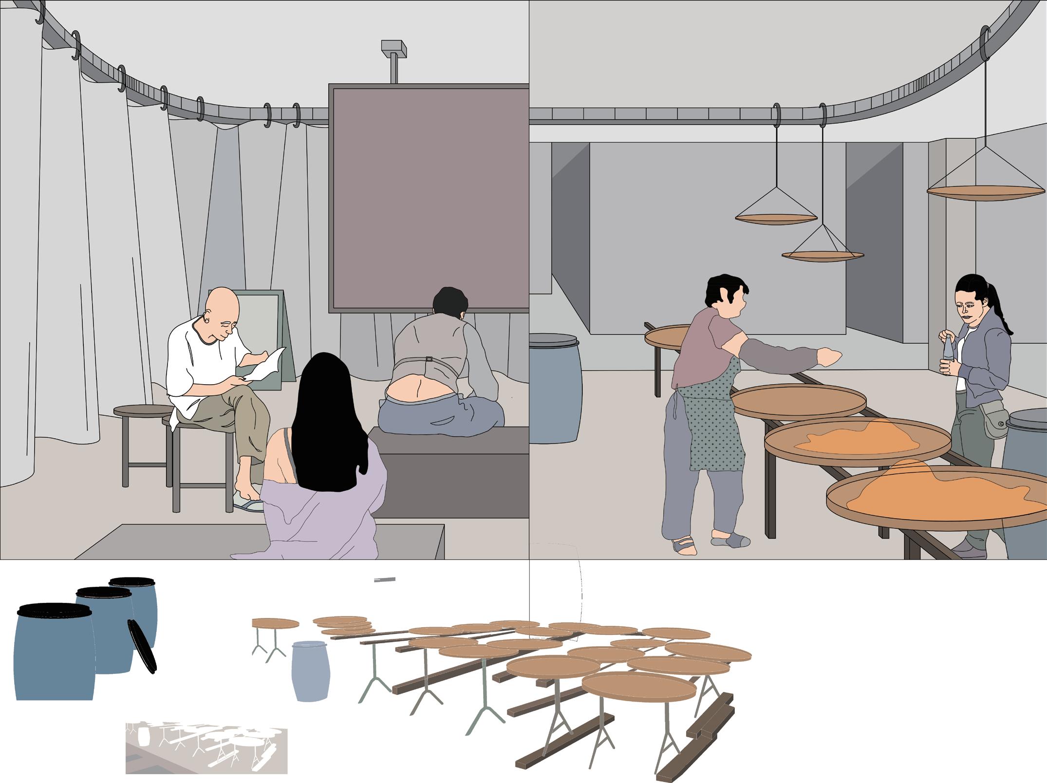 The traditional view separating work and consumption is challenged through the lens of the shopping mall, a space that blends labor and commerce. While malls face declining footfall due to overconsumption and monotony, they also act as vital “third places” for public social interaction, thereby serving a crucial community function. A reimagined mall that is more than a transactional space. This evolved architecture incorporates workspaces to allow consumers to see production and engage in repurposing items, thereby fostering sustainability and education on circular economies. The reimagined mall’s design encourages transparency in
