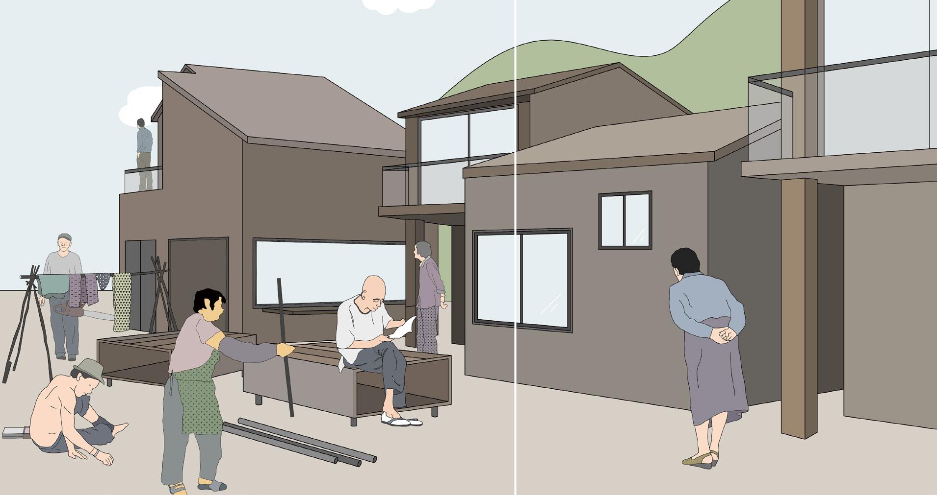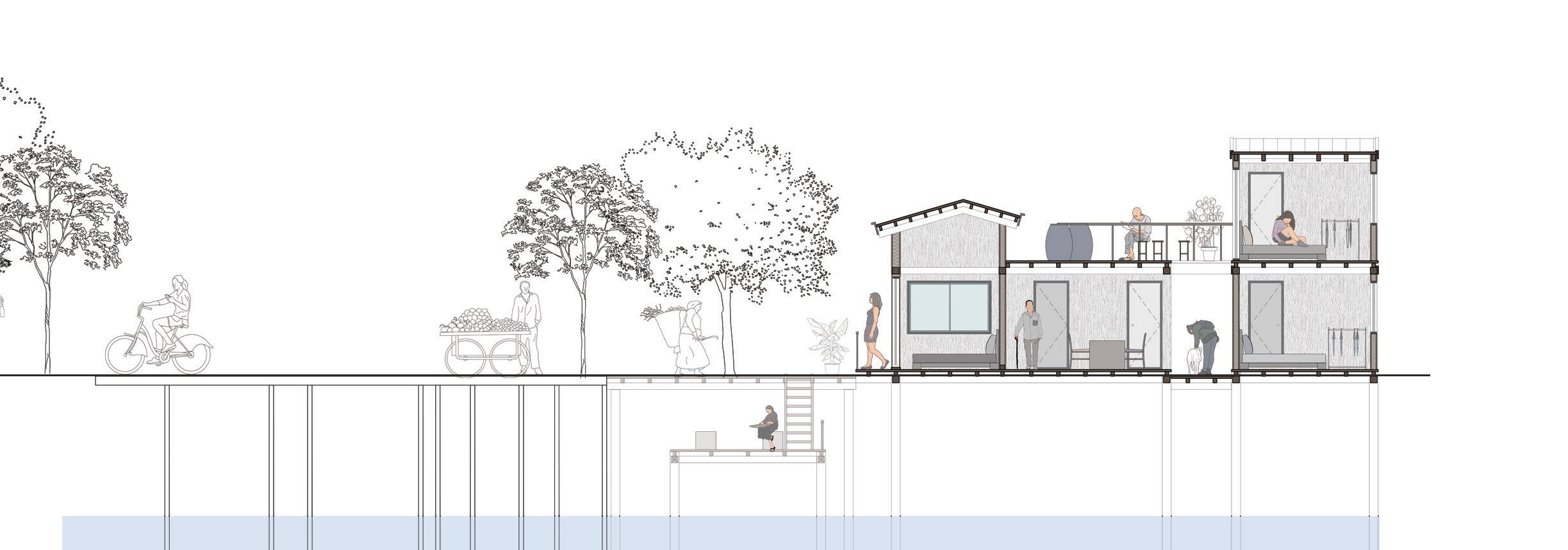 The lifestyle of people within the village of Tai O embraces aspects such as a close-knitted community keeping private spaces open to the public and flexibility of use. The housing prototype design allows the dwellers to use any space freely and abundance of ventilation.