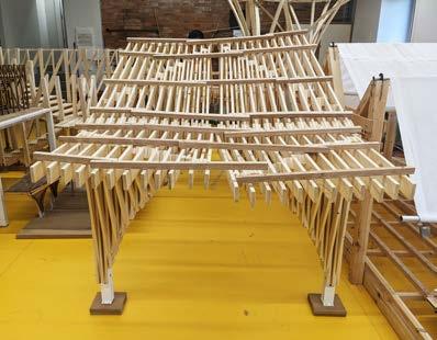 Across the semester we built two models at a whopping 1/2 scale. The first model was a representation of over a third of the original pavilion. For the second model, we were forbidden to buy any new materials, as our professors forced us to reuse exactly the same wood, plastic, and even screws to prove that our new design was in fact a complete repurposing of its former state.