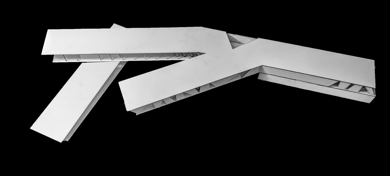 In our exploration of the original pavilion we found a recurring pattern of “modules” reflected and repeated to make the whole. We took the essence of this and recreated it in our own design. Each of the modules built off the base Wall Module which was built following the same pattern as our precedent.