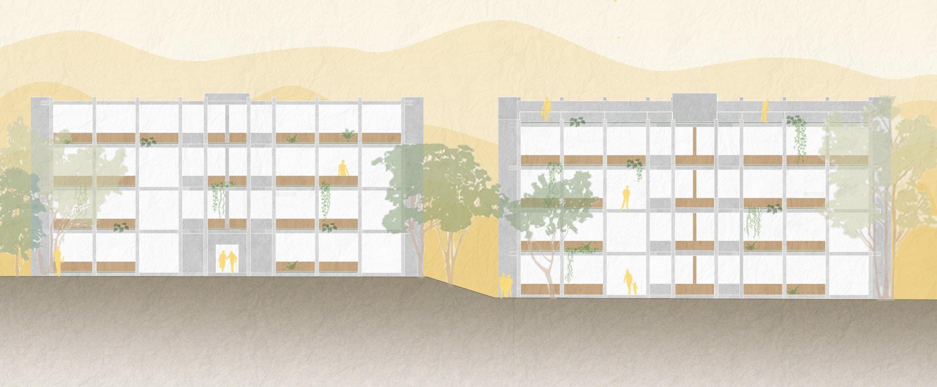 This project required us to develop a repeatable housing module for a site on campus that currently acts as a parking lot. In true modernist fashion, my project focuses its efforts on simplicity. The plan of the building is incredibly simple, and repetitive throughout. The simplicity and repetitivity is to theoretically keep building costs low which is both beneficial to the contractor and the target audience of likely cash strapped grad student. Though it does not match a honeycomb in shape, the building draws inspiration from a honeycomb in the way that the simple form of the facade matches the function of the interior. Each partition indicates a new space on the interior.