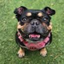 She is a confident friendly but can get very excitable so may be better suited with slightly older children or those that are used to boisterous dogs.
