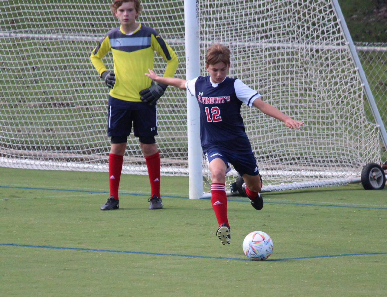 The varsity boys’ soccer team showed significant improvement throughout the season. They went into the CAMSC tournament ranked seventh overall and defeated the number two seed Trinity in the quarterfinals. St. Timothy’s lost to eventual champion Franklin Academy in the semi-finals.