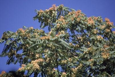 Favorite Foods in our area, adult SLFs tend to focus on the invasive tree of heaven (A. altissima) (pictured above) and grapevine (Vitis vinifera); but also prefer hops, ornamental landscape plants, apple, walnut, and hardwood trees. As they feed, they excrete sticky, sugar-rich fluid called honeydew that can build up on plants and on the ground beneath infested plants, causing sooty mold to form. Honeydew is attractive to other insects, such as bees, ants, and wasps, which may feed on it.