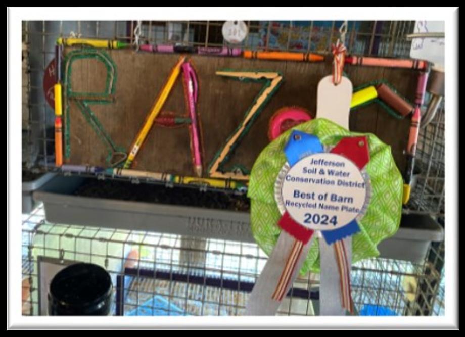 JSWCD hosted their annual Name Plate Recycling Contest at the Jefferson County Fair. Contest participants in each barn were judged on the creativity, originality, attractiveness and diversity of recycled materials used to make a stall name plate of either their own or animals name.