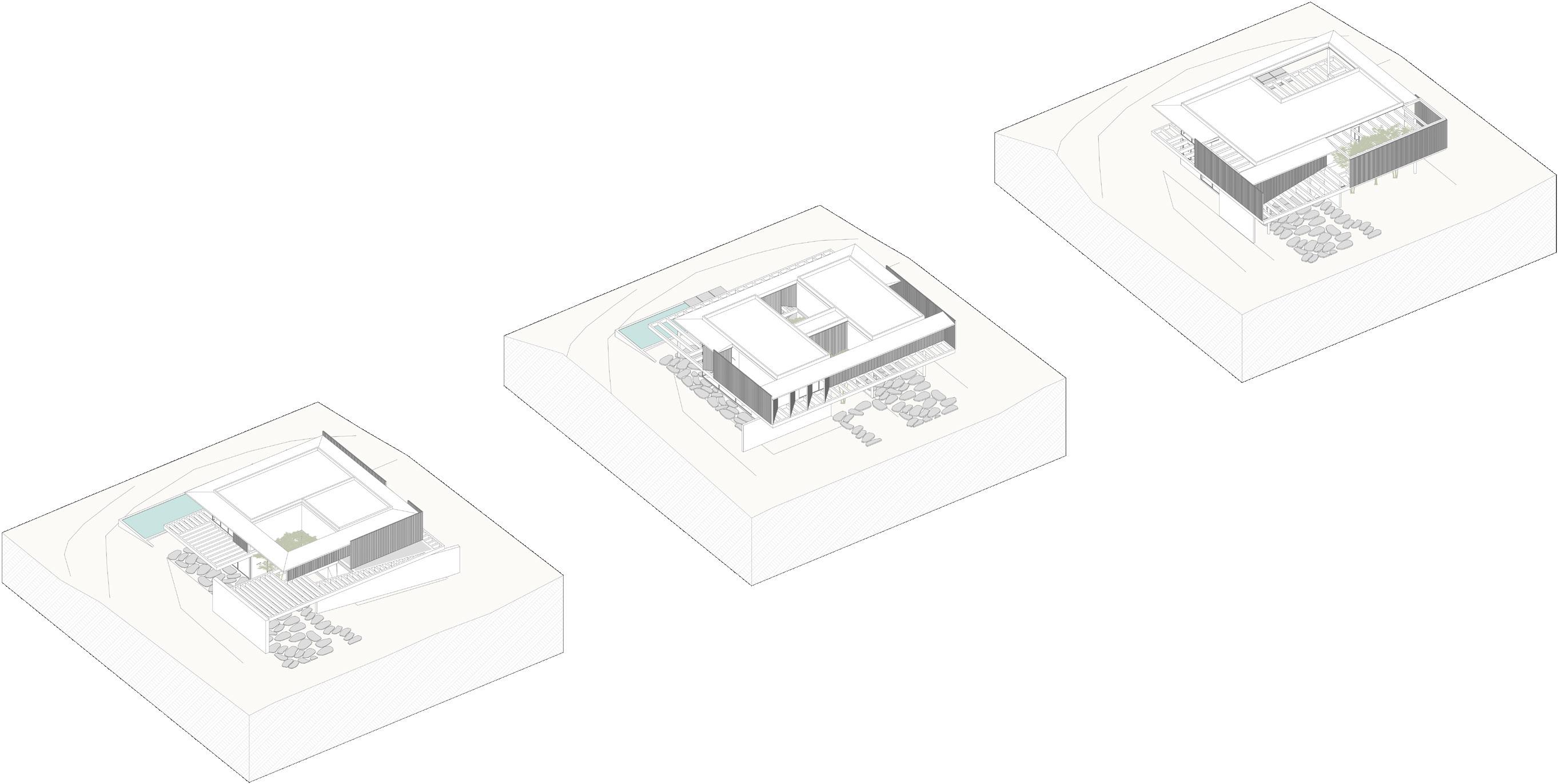 O projeto consiste em três tipologias replicadas em doze lotes em Herdade do Pinheirinho,próximo à Lisboa, em Portugal. Seguindo as rígidas normativas existentes, as tipologias foram desenvolvidas em harmônia com o espaço, valorizando a paisagem local e a visual próxima. O uso de brises escuros destaca a arquiteturo no ambiente, criando movimentos ao longo das diferentes fachadas que se repetem na via.