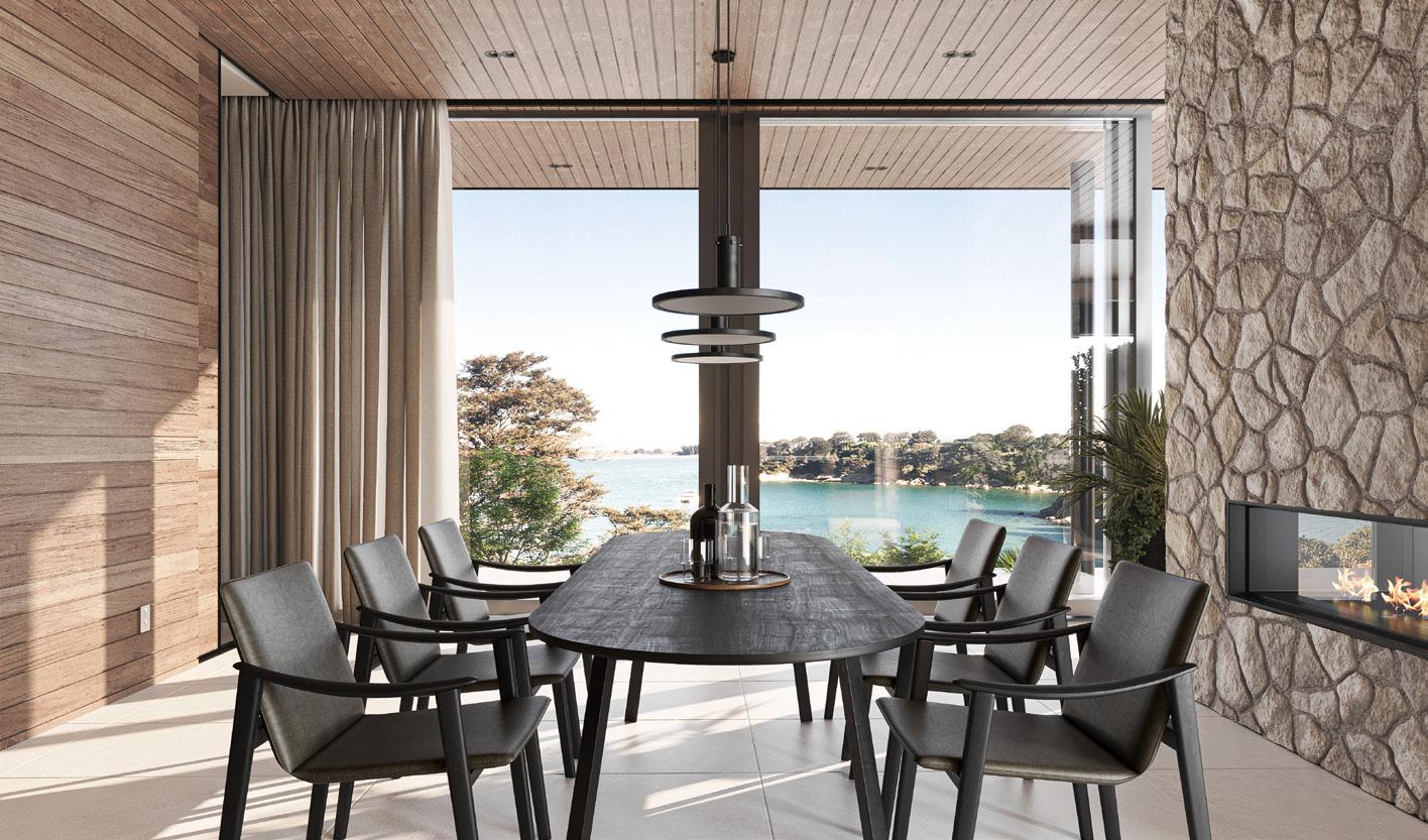 Generous floor to ceiling glazing frames uninterrupted vistas across the bay and brings the changing colours of the water and sky into the heart of the home. The transparency of the pavilion allows the interior spaces to feel closely connected to the