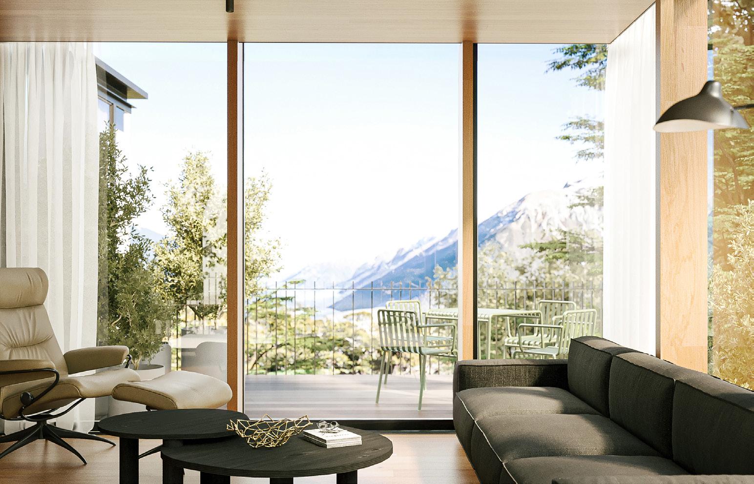 Three generous suites each include private lounge areas, and expansive glazing to frame views of the spectacular surrounding landscape.