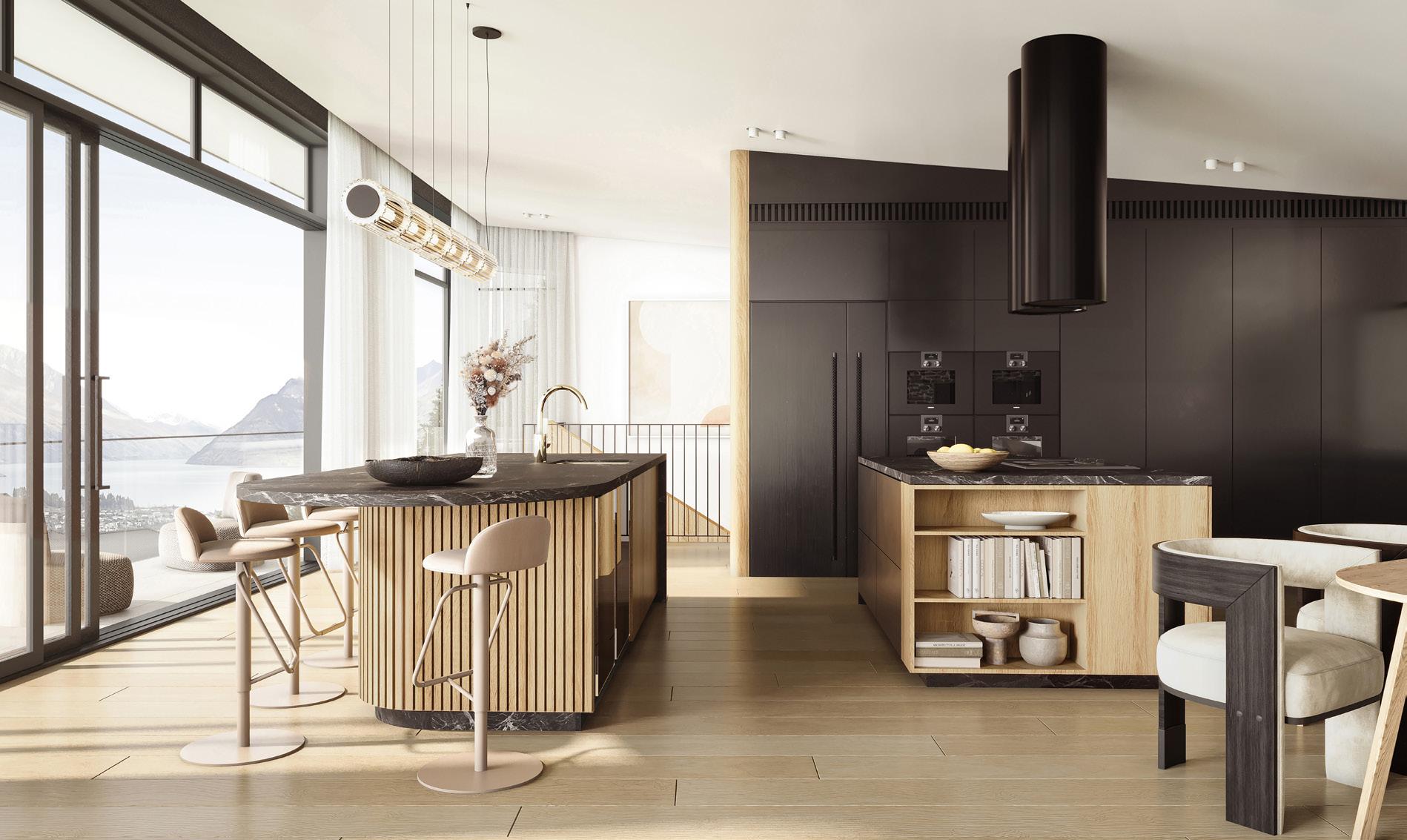 Designed to immerse its occupants in the surrounding mountains and lake vistas, the home is conceived as a series of stacked, sculptural forms that step down the steep terrain across five levels, each carefully oriented to maximise natural light and uninterrupted panoramas.