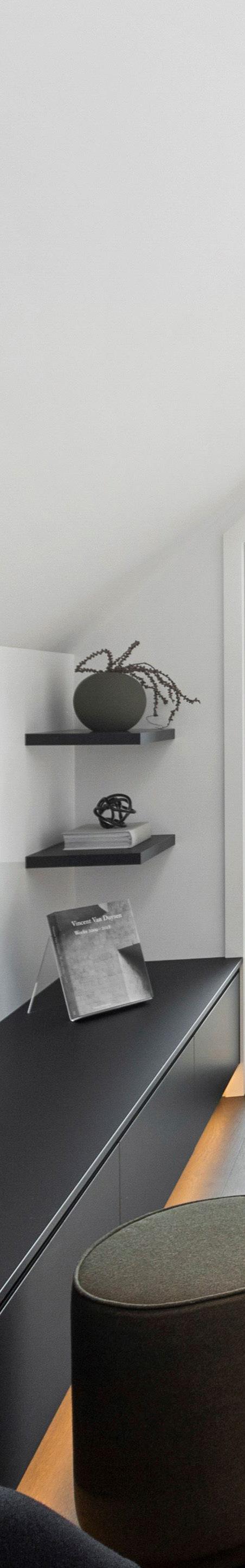 supports long-term living. Material choices focus on durability and low maintenance. Cream brick and aluminium form a clean, robust exterior, while a curved staircase finished with veneered oak and rounded balustrades introduces warmth and craftsmanship to the interior.