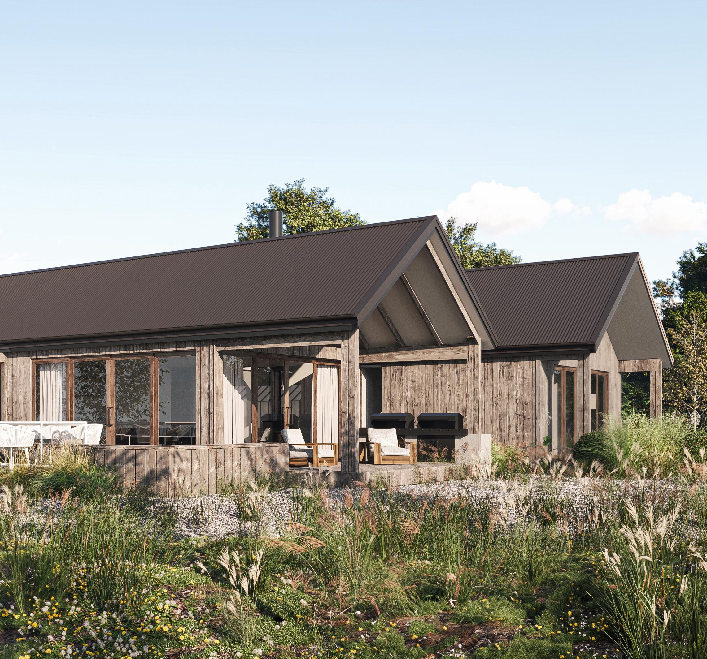 Extensive glazing will wrap the home, drawing the surrounding landscape into the everyday experience and ensuring that light and views remain constant features throughout. Large sliding openings are planned to connect the living areas with a series of outdoor spaces, allowing the house to open up fully during warmer months and supporting an easy indoor outdoor flow. Dark timber cladding will settle the home into the landscape and provide a warm, natural exterior