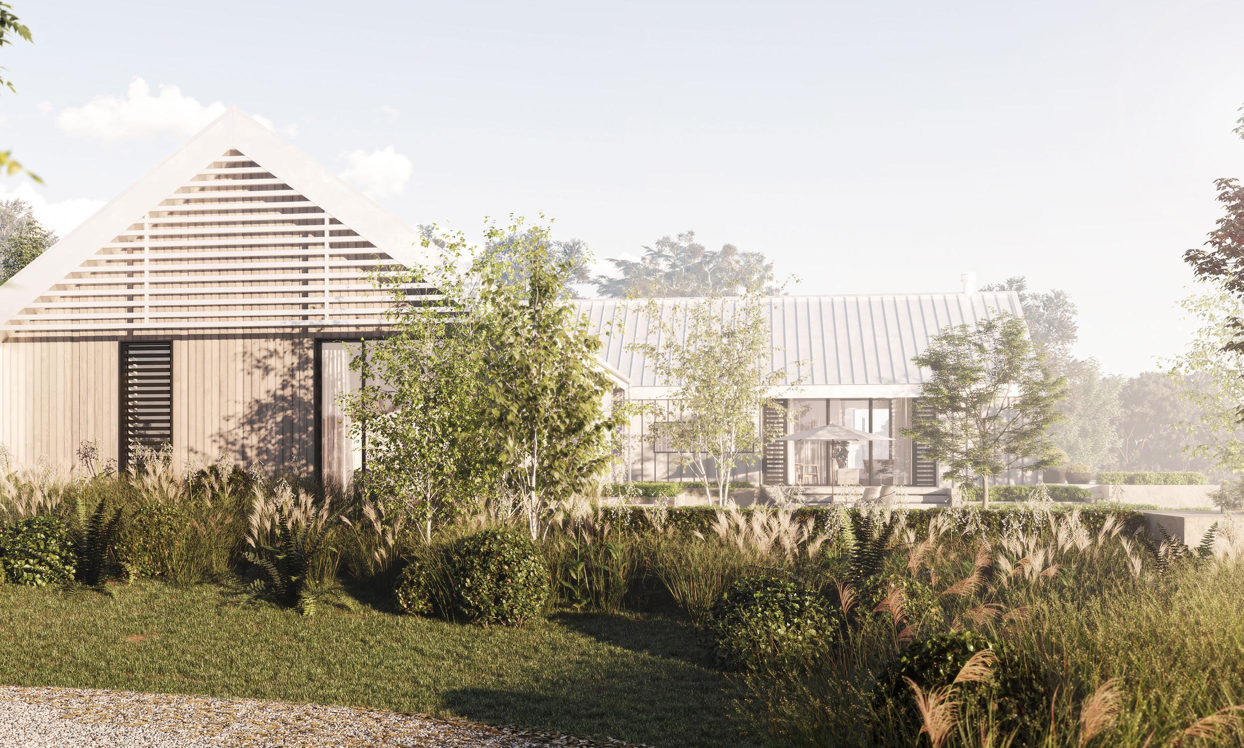 creating naturally defined spaces without relying on heavy structural intervention. This gentle rise ensures that each dwelling can enjoy morning and afternoon sun whilst respecting neighbour’s privacy.