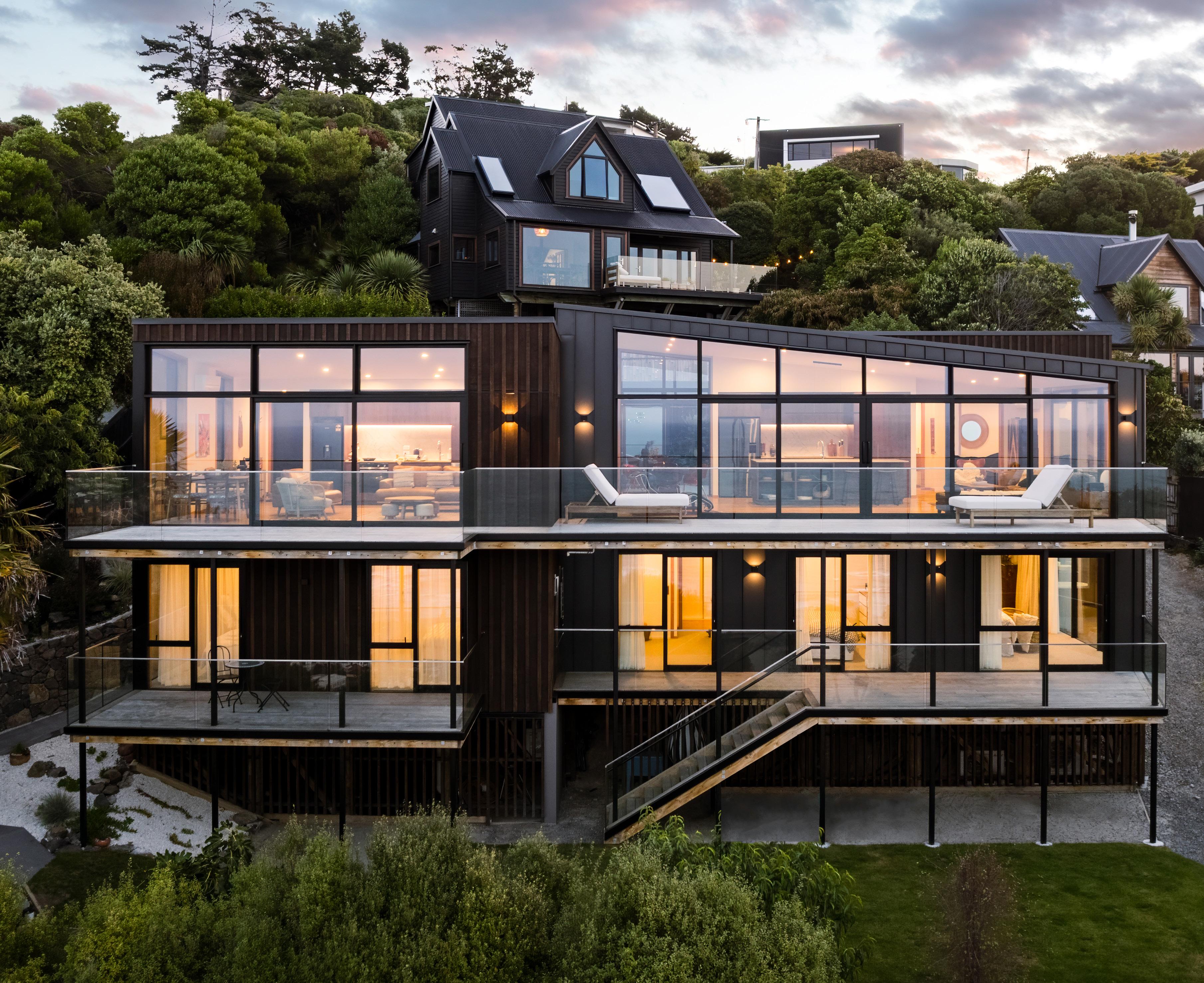 The 645m² site slopes down from the Panorama Road entrance to connect with The Zig Zag Track, leading to Sumner town and the beach below. It offers expansive views into Sumner and towards Tuawera (Cave Rock), Te Karoro Karoro (Brighton Spit), Pegasus Bay, and the Kaikōura Ranges beyond. Both homes were carefully designed to capture sunlight, provide privacy and shelter, and frame the magnificent outlook. Each sits on its own separate title, working with the existing steep topography and basalt retaining walls to maximise development potential.