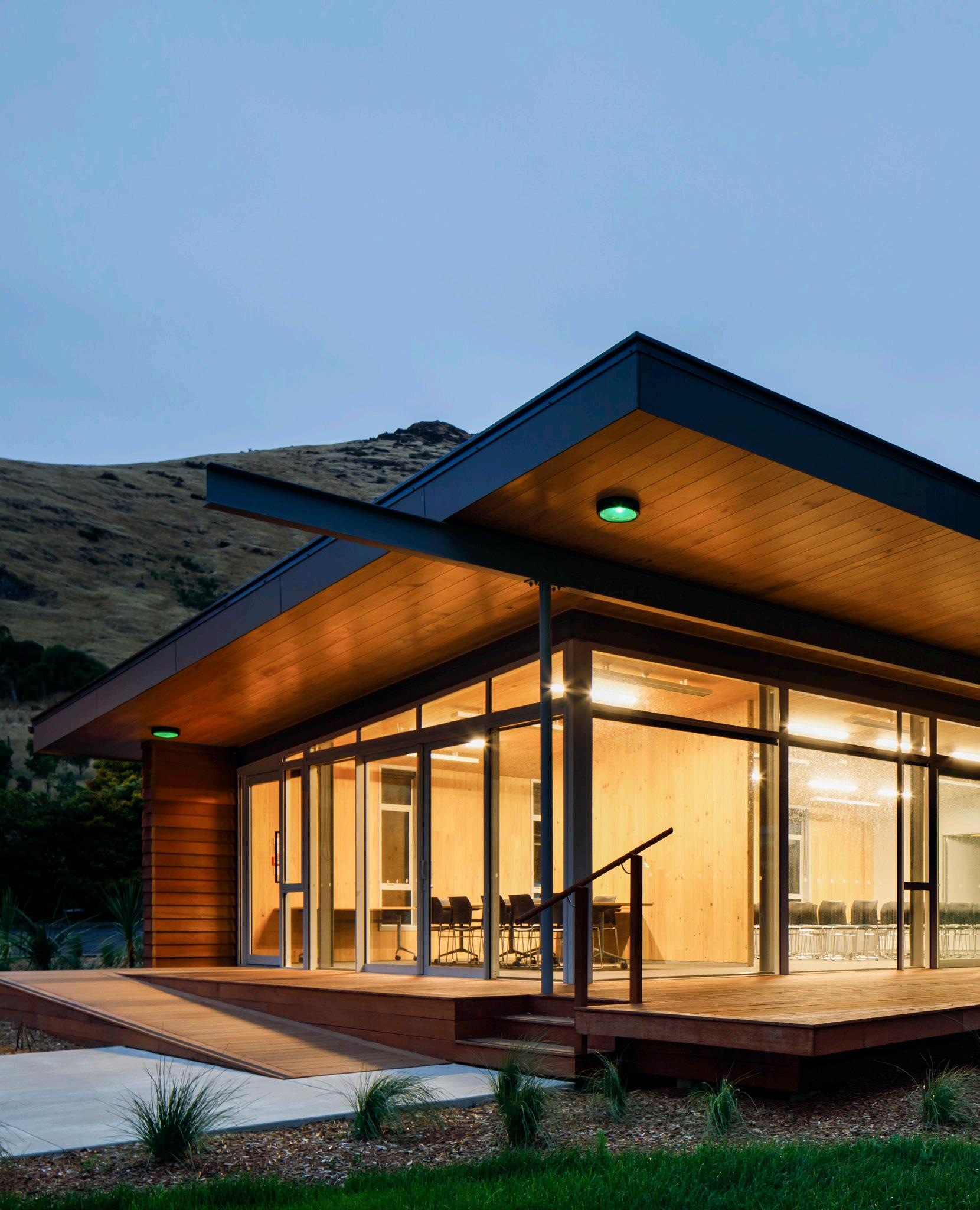 Use of natural materials and sustainable design principles were emphasised throughout the design, with low carbon, mass-timber used extensively throughout; prefabricated using Potius™ engineered roof, walls and flooring panels, and TimberLab LVL portals.