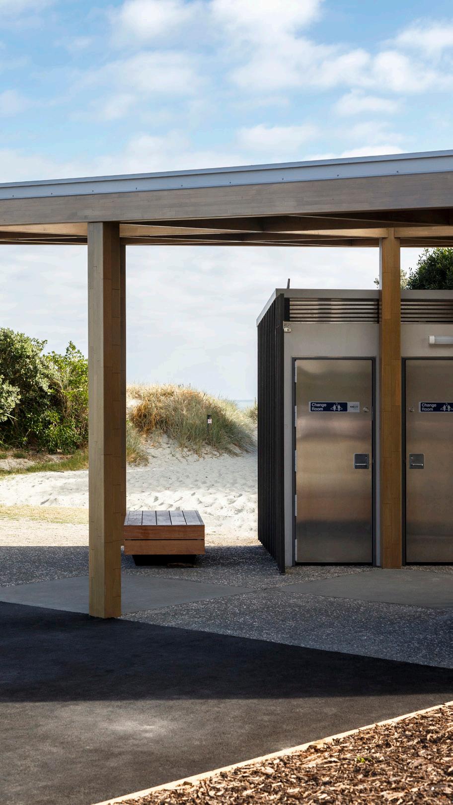 Striking a balance between function, shelter, amenity and accessibility, the Tahunanui Lions toilet block project is grounded by the functional aspect of the two banks of toilet blocks, which provide shelter for those escaping the prevailing breeze.
