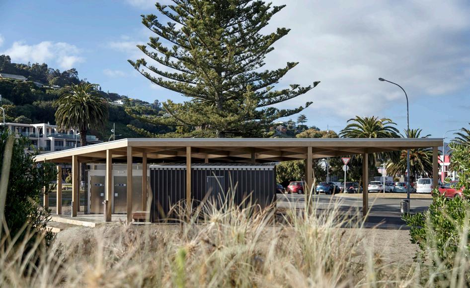The functionally redesigned Tahunanui Beach toilet block in Nelson complements the beloved neighbouring playground's historic appeal, whilst considering the site's heritage and cultural history.