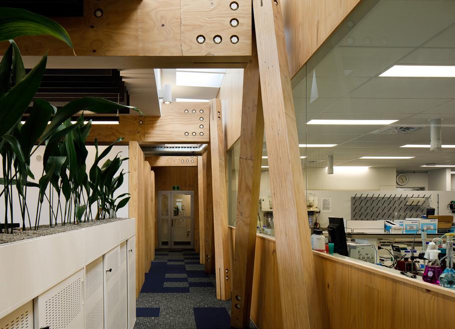 Specialist science facilities include chemistry labs, PC2 Molecular labs, wet labs and a flow tank. A high level of transparency through the building be-tween the labs and