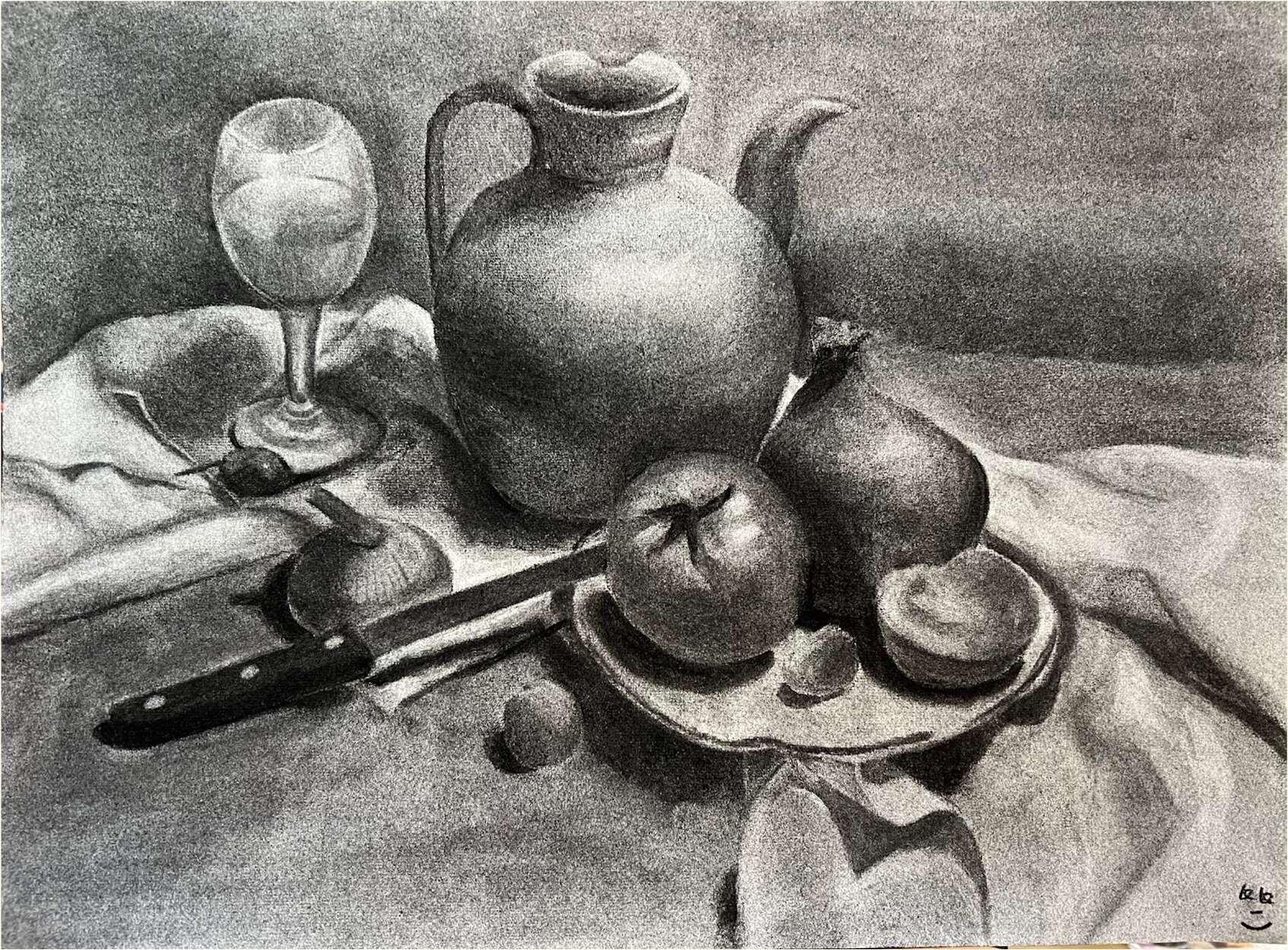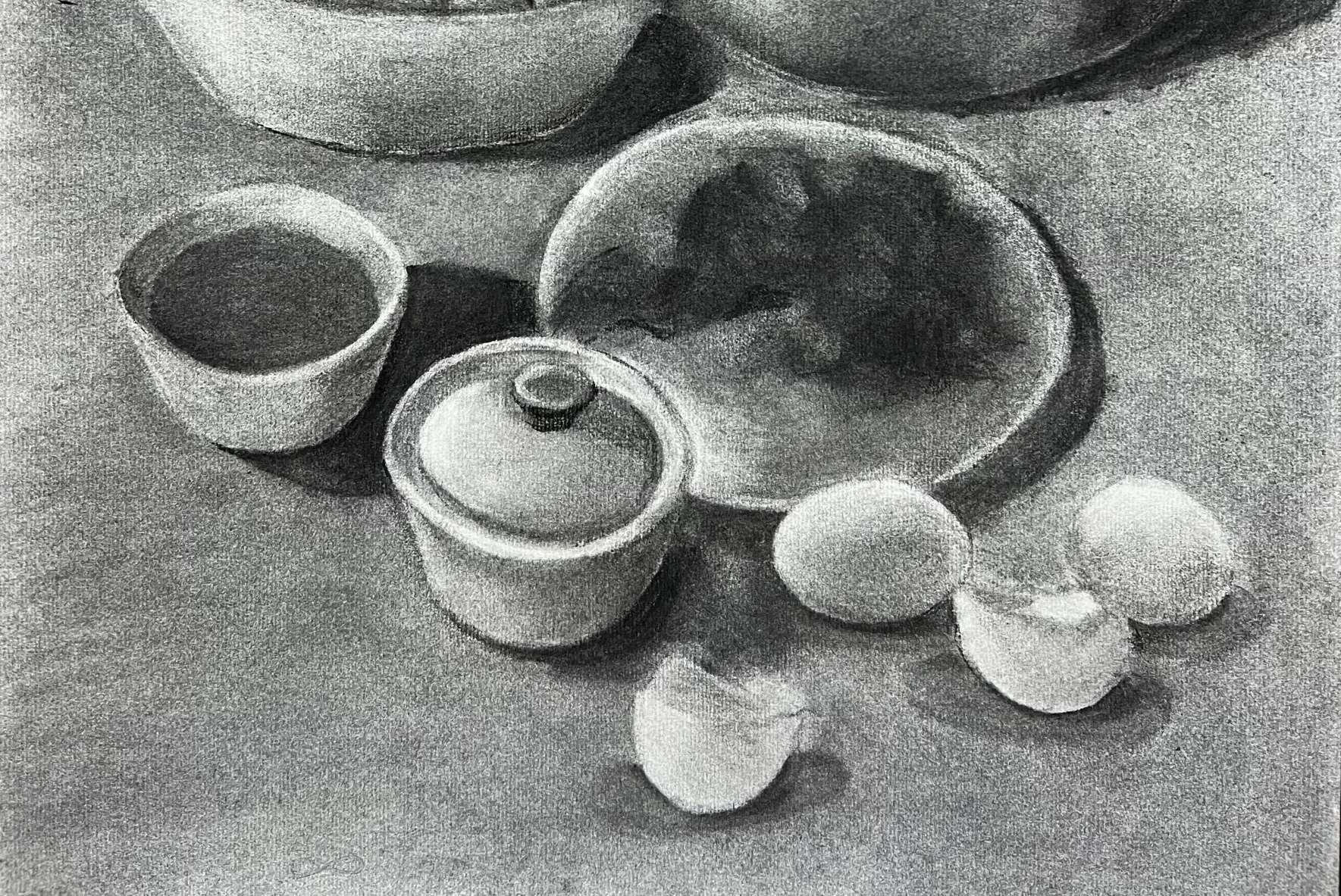 藉由繪製黑白的素描與彩色的水彩,可以比對不同顏色之間的 明暗、明度差異。