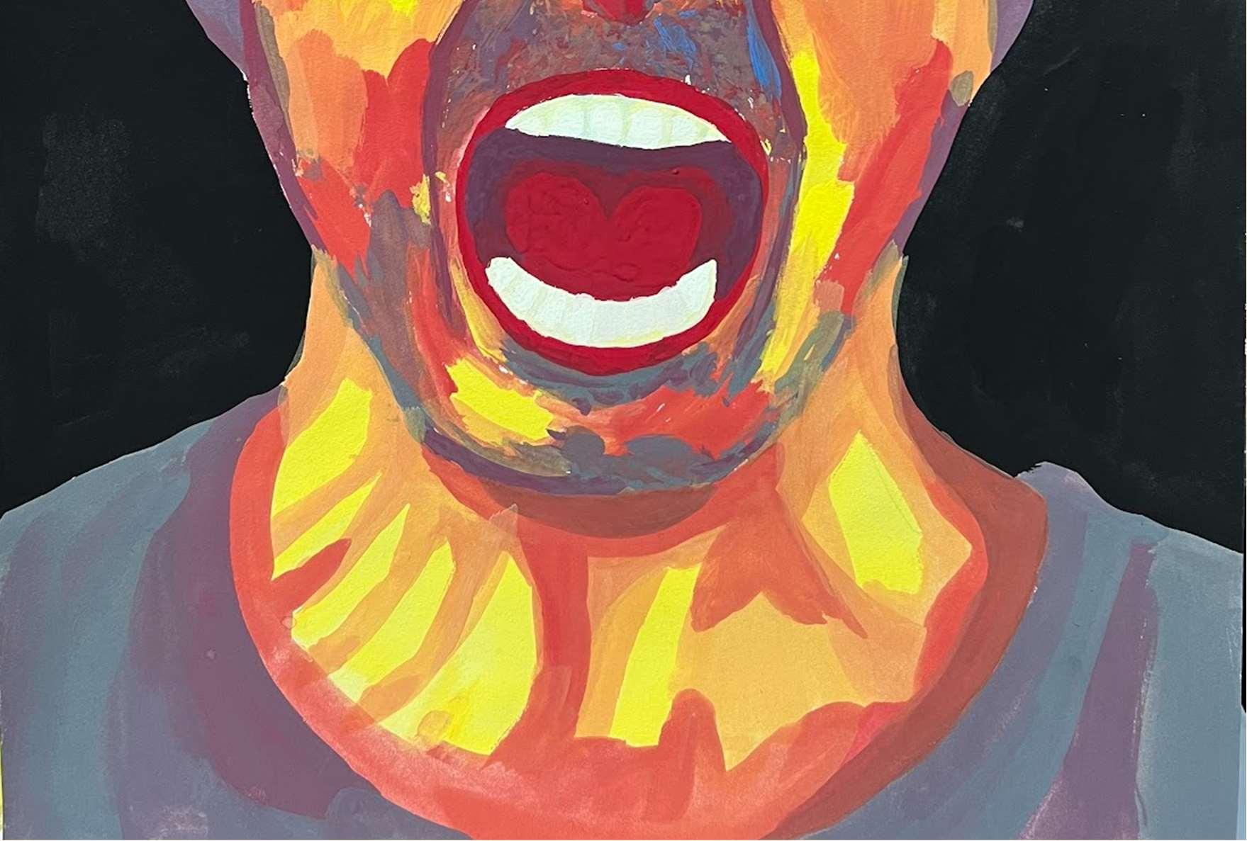 用鮮明強烈的色彩、色塊拼接的方式,表達憤怒的情緒。