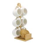 SET 6 TAZAS TE CAFE CON SOPORTE DE MADERA (JTBAZ405)
