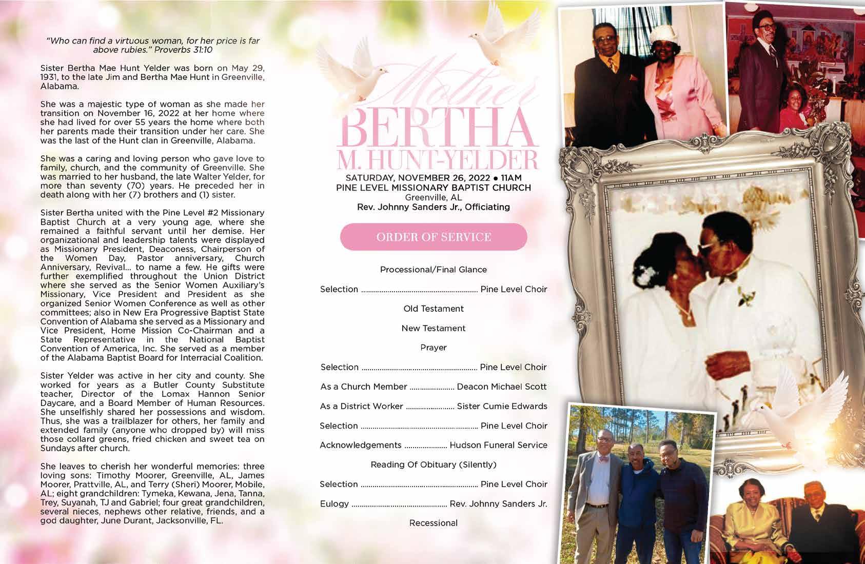 Keepsake for Mrs. Bertha M. Hunt-Yelder