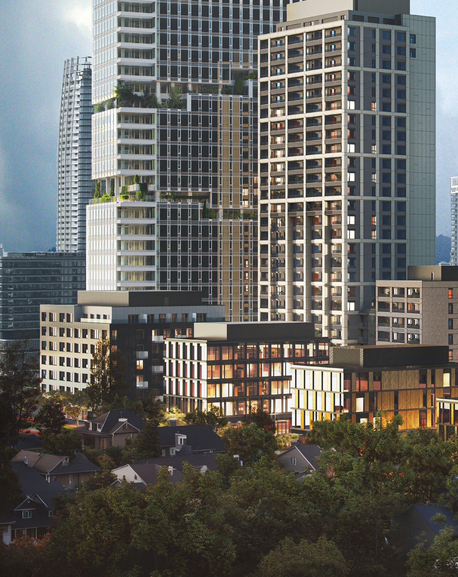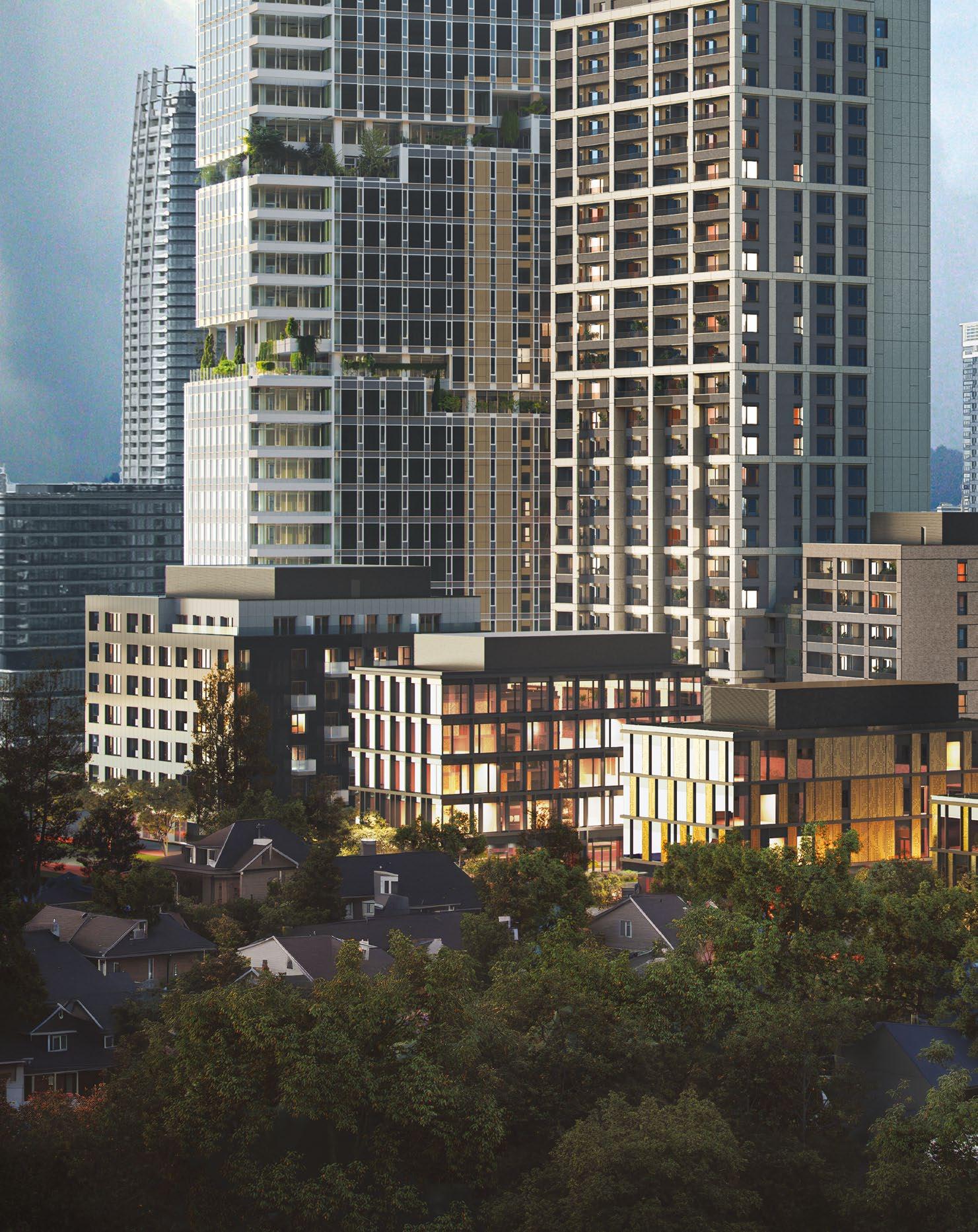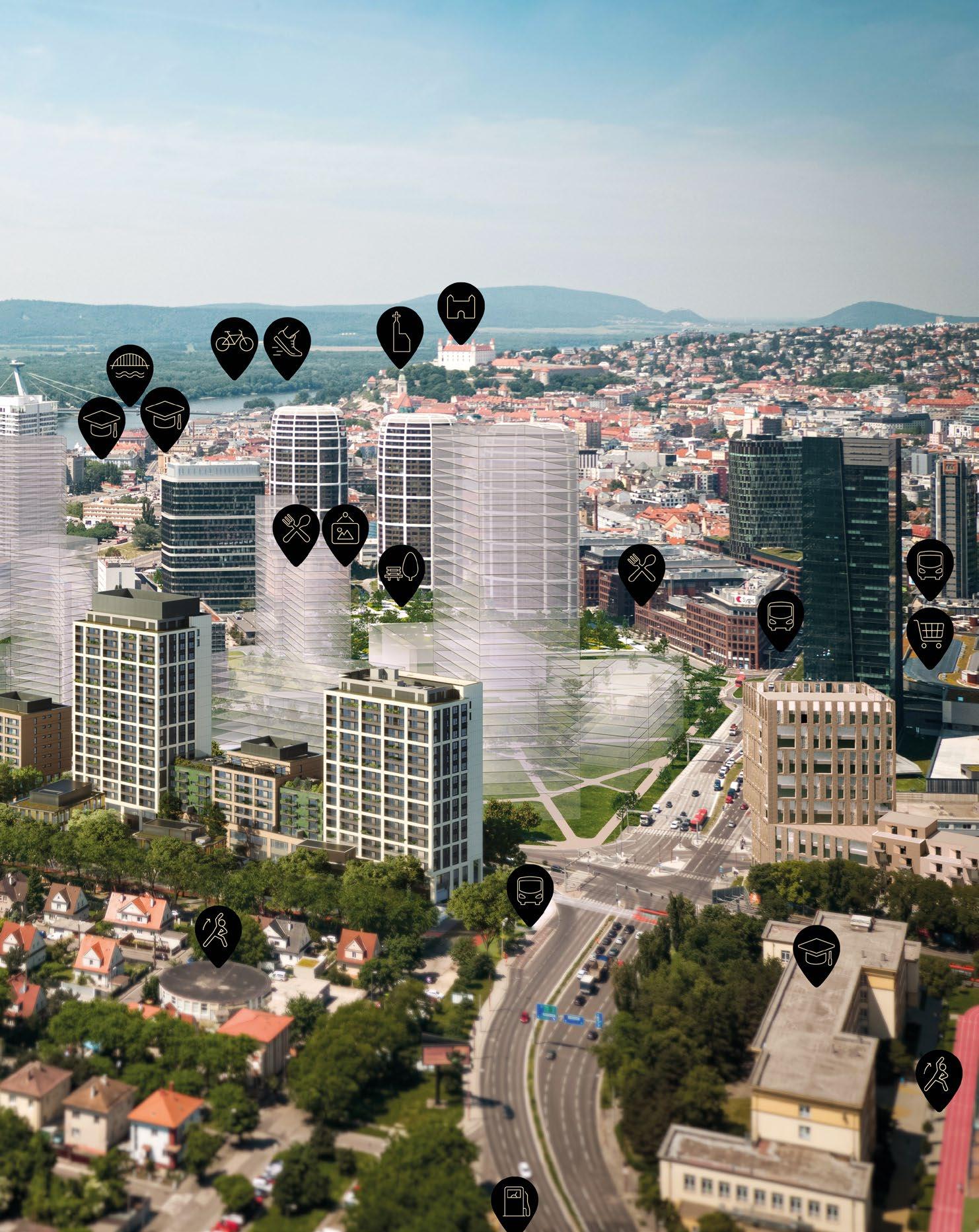 Polyfunkčné budovy sú situované v oblasti s kompletnou občianskou vybavenosťou. V pešej vzdialenosti nájdete supermarkety, tržnice, fitness centrá, kultúrne a spoločenské zariadenia. Toto všetko vytvára ideálne podmienky pre zamestnancov, klientov i obyvateľov downtownu, ktorí tu nájdu všetko potrebné pre pohodlný a kvalitný život.