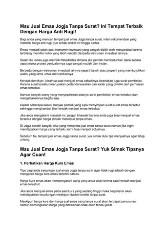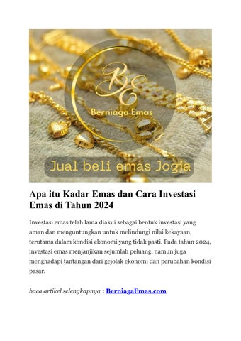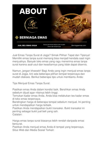 Jual Beli Emas Tanpa Surat Jogja Nggak Ribet, Cuma di Sini! Punya emas tanpa surat dan ingin menjualnya? Bingung carinya? Jangan khawatir! Kini, Anda bisa jual emas tanpa surat jogja dengan mudah dan aman. berniagaemas.com hadir sebagai solusi bagi Anda yang ingin menjual emas tanpa surat dengan harga terbaik
