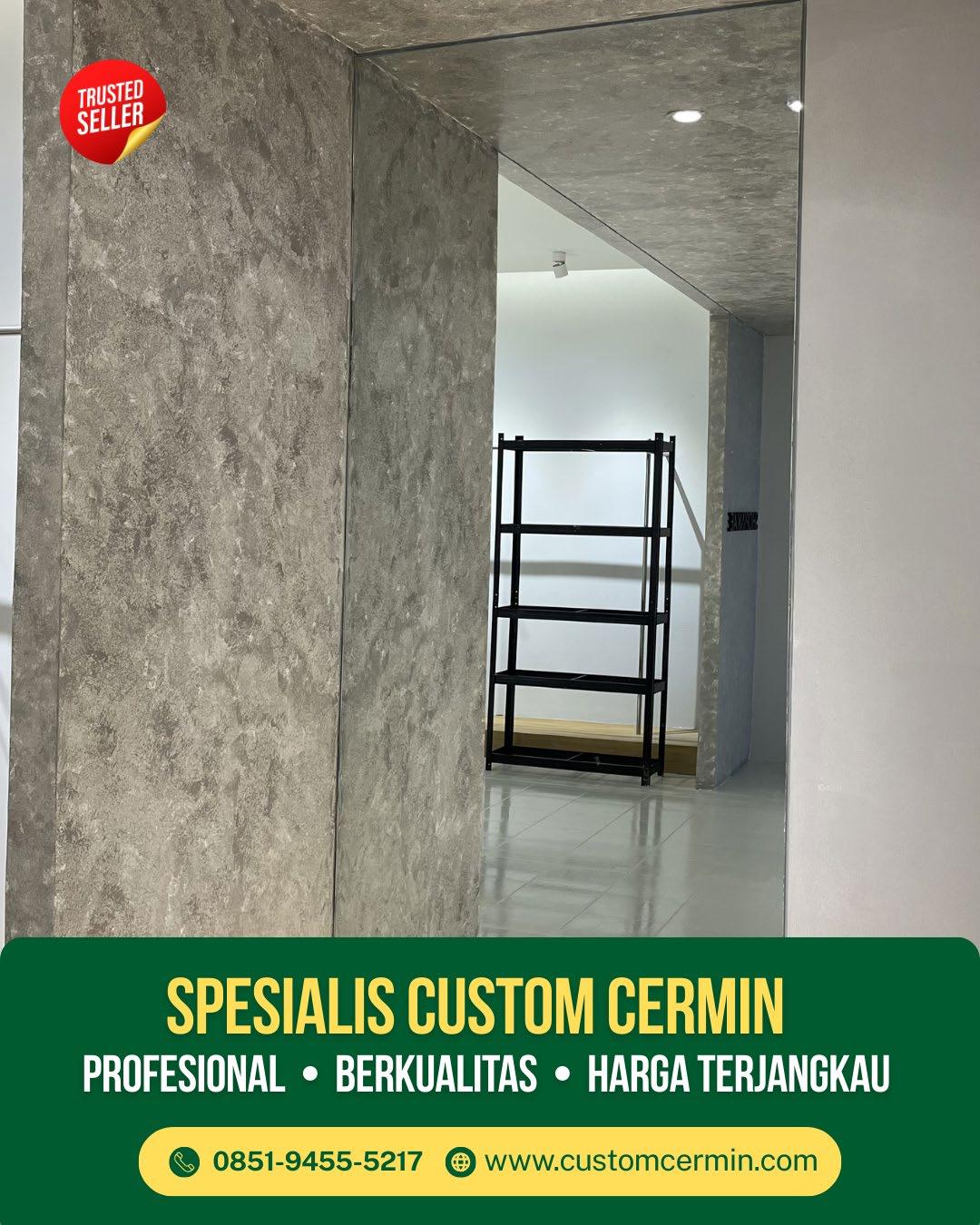 Untuk kebutuhan khusus, kami melayani Custom Cermin Mata dengan presisi tinggi. Kami juga mengerjakan Custom Cermin Kamar Mandi, Cermin Toilet Custom, dan Cermin Wastafel Custom dengan material tahan lembap dan finishing rapi sehingga aman digunakan di area basah.