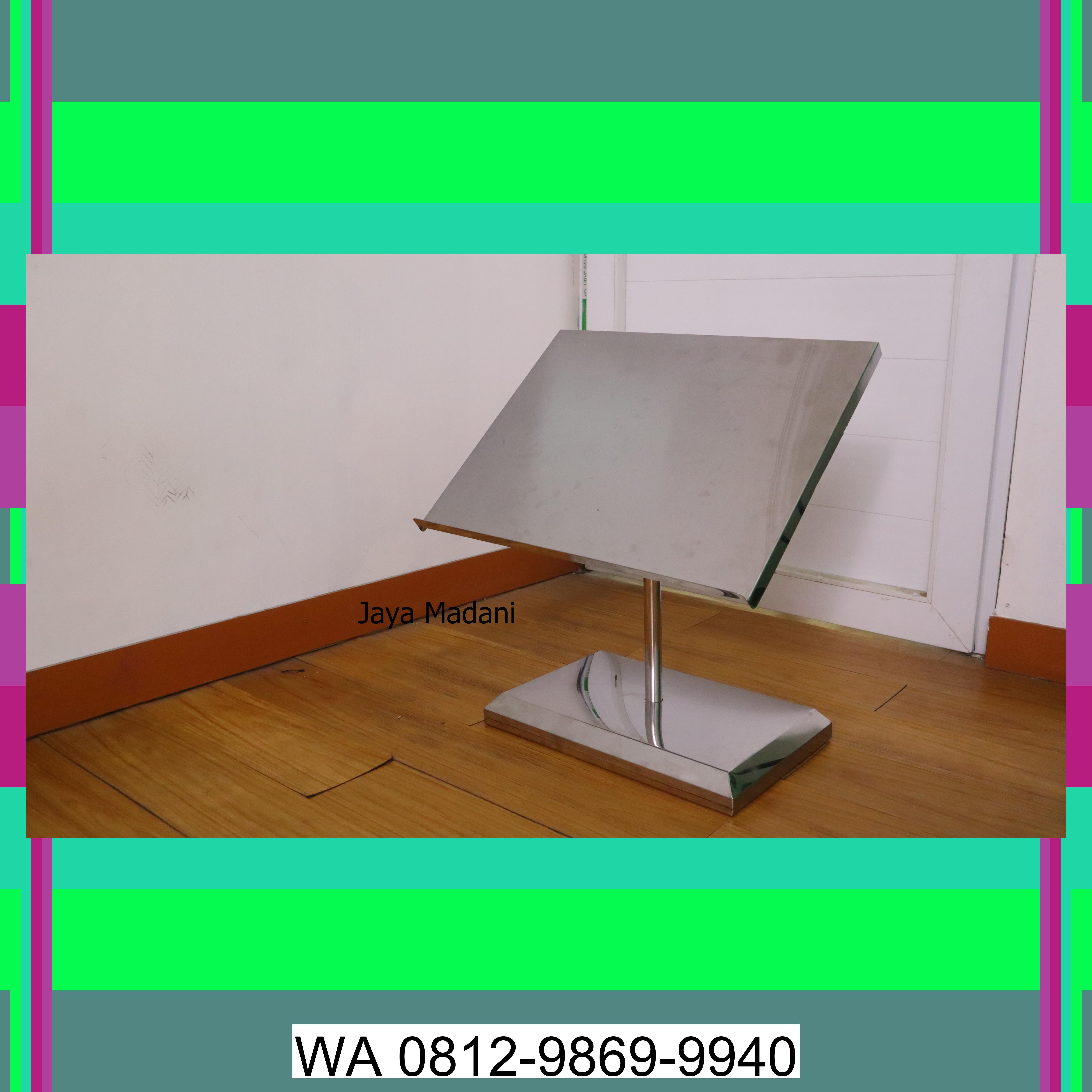 Kami menawarkan Jual Stand Qur'an / Stand Al-Qur'an / Stand Holder Al-Qur'an terbaik di Aceh Barat Daya.<br><br>Standing Al-Qur'an berbahan stainless steel dengan desain modern dan elegan, dirancang untuk memudahkan berbagai kegiatan ibadah Anda.<br><br>Spesial untuk Anda: Manfaatkan sekarang juga! Dapatkan Jual Stand Qur'an / Stand Al-Qur'an / Stand Holder Al-Qur'an dengan harga yang tidak akan Anda temukan di tempat lain. Kami yakin Anda tidak akan menyesal memilih kami. Hubungi kami sekarang di 0812-9869-9940 untuk informasi lebih lanjut atau kunjungi kami di Aceh Barat Daya.<br><br>Juga tersedia: Stand Menu | Tempat Menu | Stand Rak Menu Buku Menu Restoran | Stand Holder Menu Resto, Tempat Majalah rak koran stainless steel, Rak Payung | Tempat Payung | Rak Tempat Stand Payung | Lemari Payung, Troli Pengumpulan Piring Kotor Serbaguna, Troli Saji Serbaguna, Troli Hotel Roda 8in Luggage Cart, Keranda Jenazah Portable Stainless, Trolly laundry, troli linen hotel, Tempat Mandi jenazah dan tenda pemandian maya