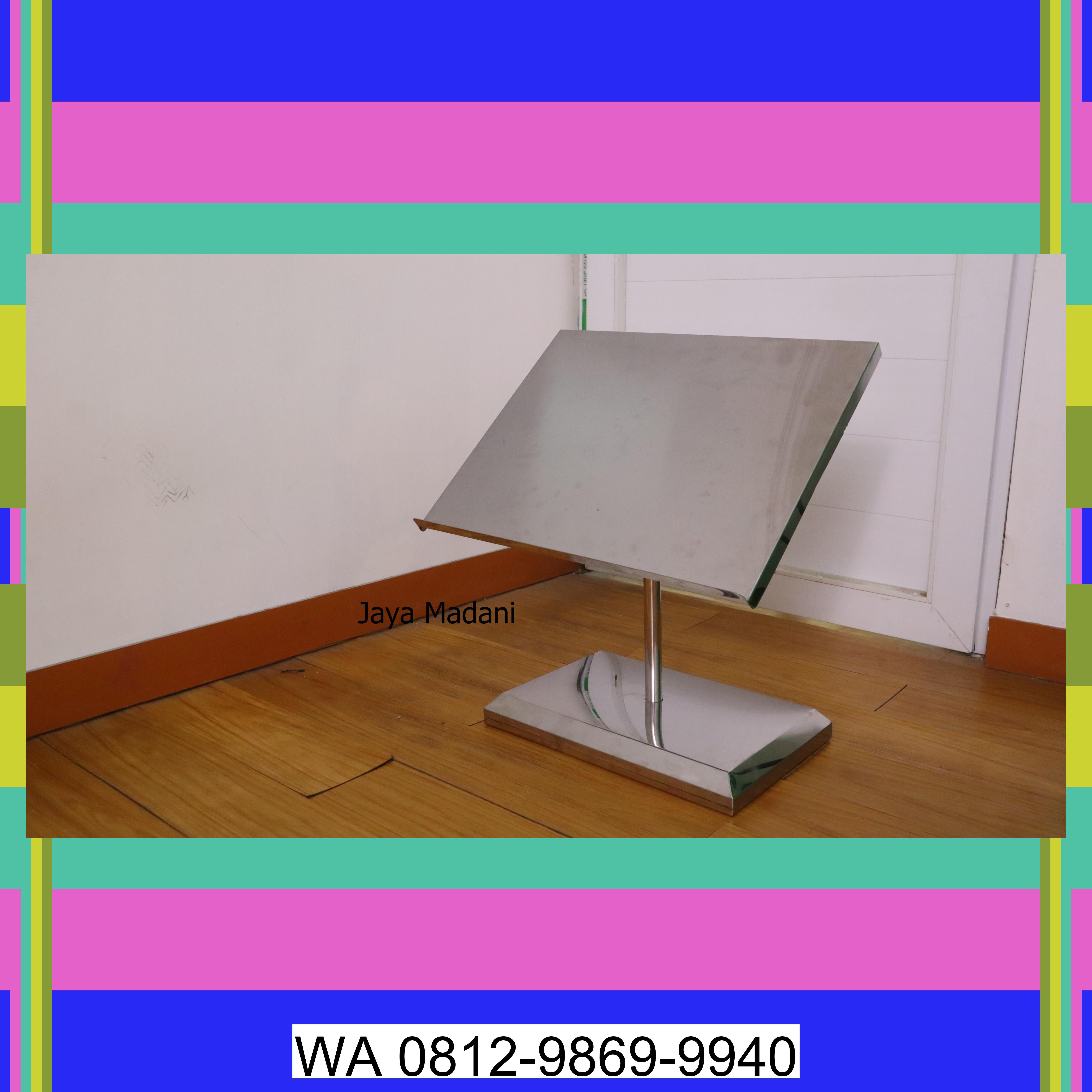 Kami menawarkan Jual Stand Qur'an / Stand Al-Qur'an / Stand Holder Al-Qur'an terbaik di Rajagaluh.<br><br>Standing Al-Qur'an berbahan stainless steel dengan desain modern dan elegan, dirancang untuk memudahkan berbagai kegiatan ibadah Anda.<br><br>Spesial untuk Anda: Manfaatkan  sekarang juga! Dapatkan Jual Stand Qur'an / Stand Al-Qur'an / Stand Holder Al-Qur'an dengan harga yang tidak akan Anda temukan di tempat lain. Kami yakin Anda tidak akan menyesal memilih kami. Hubungi kami sekarang di 0812-9869-9940 untuk informasi lebih lanjut atau kunjungi kami di Rajagaluh.<br><br>Juga tersedia: Stand Menu | Tempat Menu | Stand Rak Menu Buku Menu Restoran | Stand Holder Menu Resto, Tempat Majalah rak koran stainless steel, Rak Payung | Tempat Payung | Rak Tempat Stand Payung | Lemari Payung, Troli Pengumpulan Piring Kotor Serbaguna, Troli Saji Serbaguna, Troli Hotel Roda 8in Luggage Cart, Keranda Jenazah Portable Stainless, Trolly laundry, troli linen hotel, Tempat Mandi jenazah dan tenda pemandian mayat, Paketan R