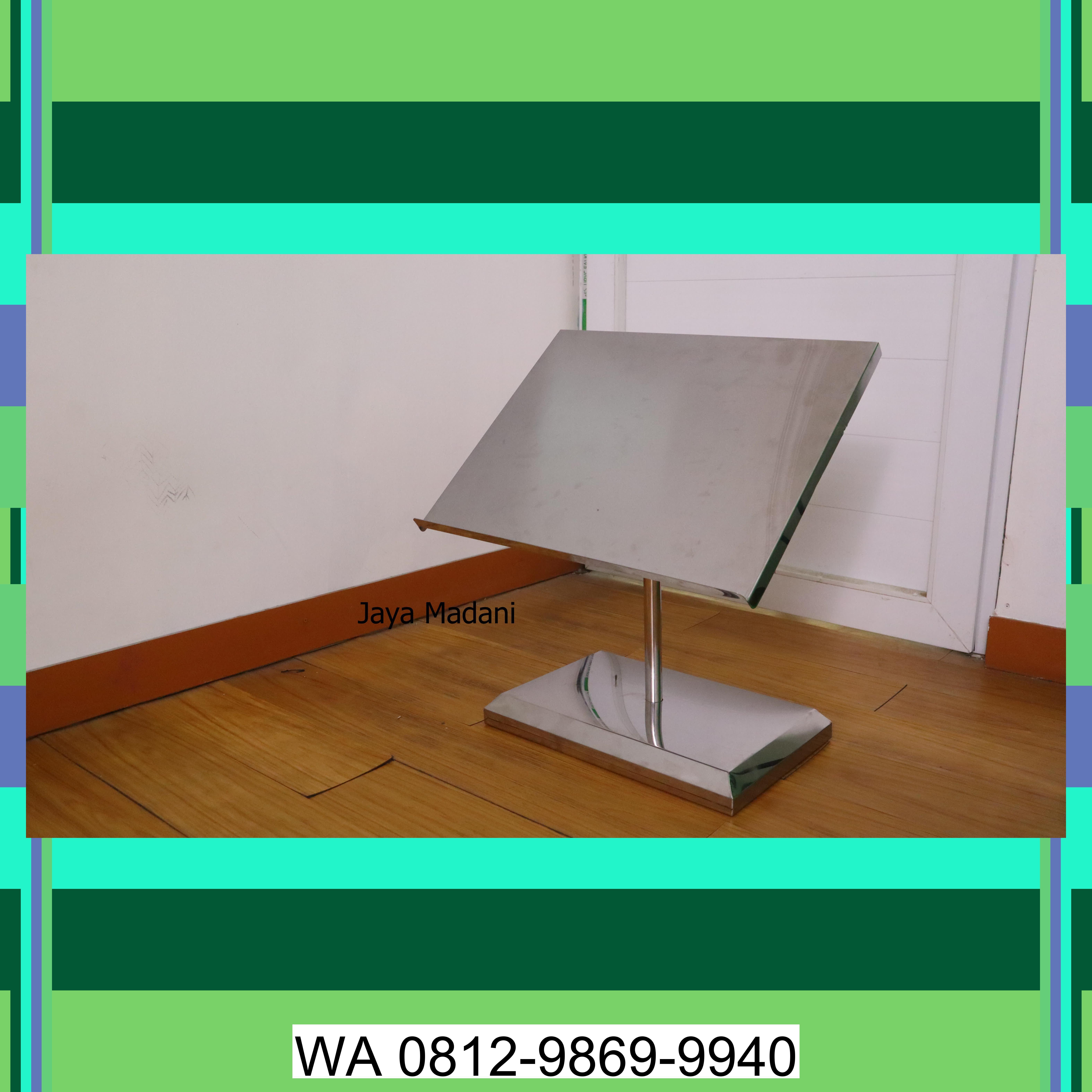 Kami menawarkan Jual Stand Qur'an / Stand Al-Qur'an / Stand Holder Al-Qur'an terbaik di Galesong Utara.<br><br>Standing Al-Qur'an berbahan stainless steel dengan desain modern dan elegan, dirancang untuk memudahkan berbagai kegiatan ibadah Anda.<br><br>Spesial untuk Anda: Manfaatkan sekarang juga! Dapatkan Jual Stand Qur'an / Stand Al-Qur'an / Stand Holder Al-Qur'an dengan harga yang tidak akan Anda temukan di tempat lain. Kami yakin Anda tidak akan menyesal memilih kami. Hubungi kami sekarang di 0812-9869-9940 untuk informasi lebih lanjut atau kunjungi kami di Galesong Utara.<br><br>Juga tersedia: Stand Menu | Tempat Menu | Stand Rak Menu Buku Menu Restoran | Stand Holder Menu Resto, Tempat Majalah rak koran stainless steel, Rak Payung | Tempat Payung | Rak Tempat Stand Payung | Lemari Payung, Troli Pengumpulan Piring Kotor Serbaguna, Troli Saji Serbaguna, Troli Hotel Roda 8in Luggage Cart, Keranda Jenazah Portable Stainless, Trolly laundry, troli linen hotel, Tempat Mandi jenazah dan tenda pemandian mayat,