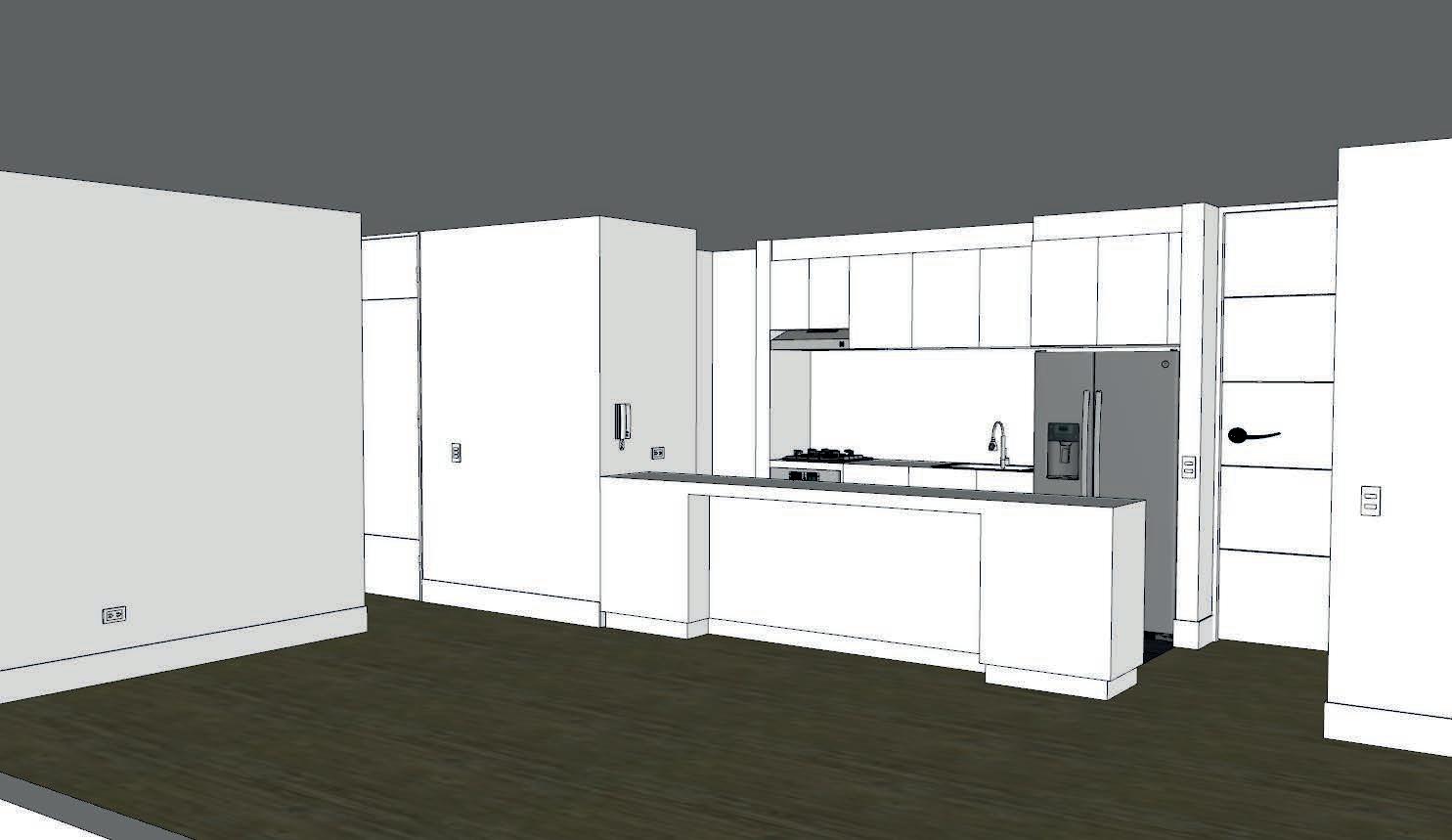 La remodelación de las áreas comunes, como la sala-comedor y la cocina, en el apartamento ubicado en Chico Norte ha sido un ejercicio de transformación audaz y distintivo. Inspirado en el estilo industrial y brutalista de la arquitectura, el diseño se centra en la exhibición de tonos y texturas crudas de los materiales. creando una atmósfera de autenticidad y carácter. Las paredes ásperas y los techos altos se convierten en lienzos para las sutiles interacciones de luz y sombra. Una de las características clave del diseño son las triangulaciones visuales de los materiales, donde las líneas y los ángulos se entrelazan armoniosamente, creando una sensación de movimiento y dinamismo en todo el espacio. Esta estética se extiende de manera coherente y fluida por toda el área intervenida, ofreciendo una experiencia visualmente intrigante y emocionalmente resonante para los residentes y visitantes por igual.