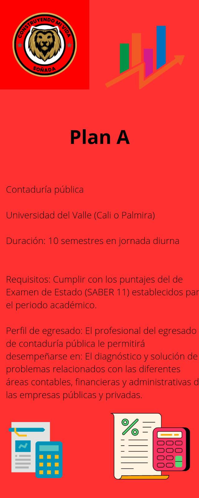 Mi plan b sería estudiar y seguir la carrera que estoy haciendo en el sena en este momento ya que para eso lo estoy haciendo, para tener algo que me ayude en caso de no poder cumplir mi plan A.