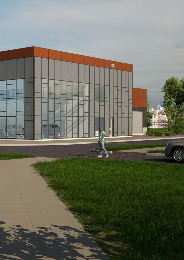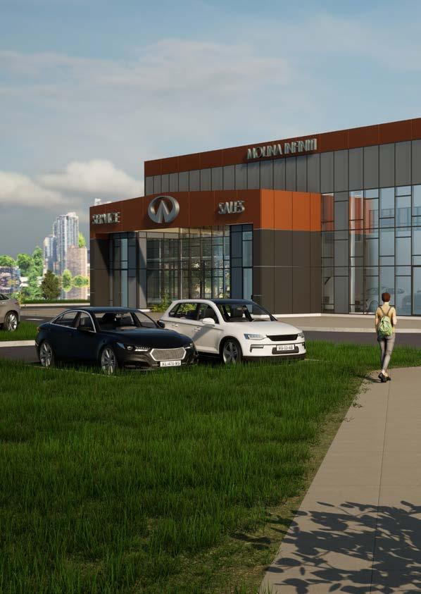 The client has requested the combination of Curtain Wall Panels and Composite Metal Panels for the envelope of the building. In regard to the customers’ experience, both service and sales vestibules are located in front of the main street with visible signage to provide better accessibility
