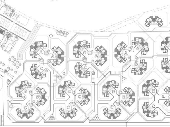 The initial geometric figure was an octagon based on the idea of providing a central plaza. After decomposing, fractioning, and rotating the remaining parts, 3 different forms were created and organized in an elongated composition that originated the 3 unit typologies in the project