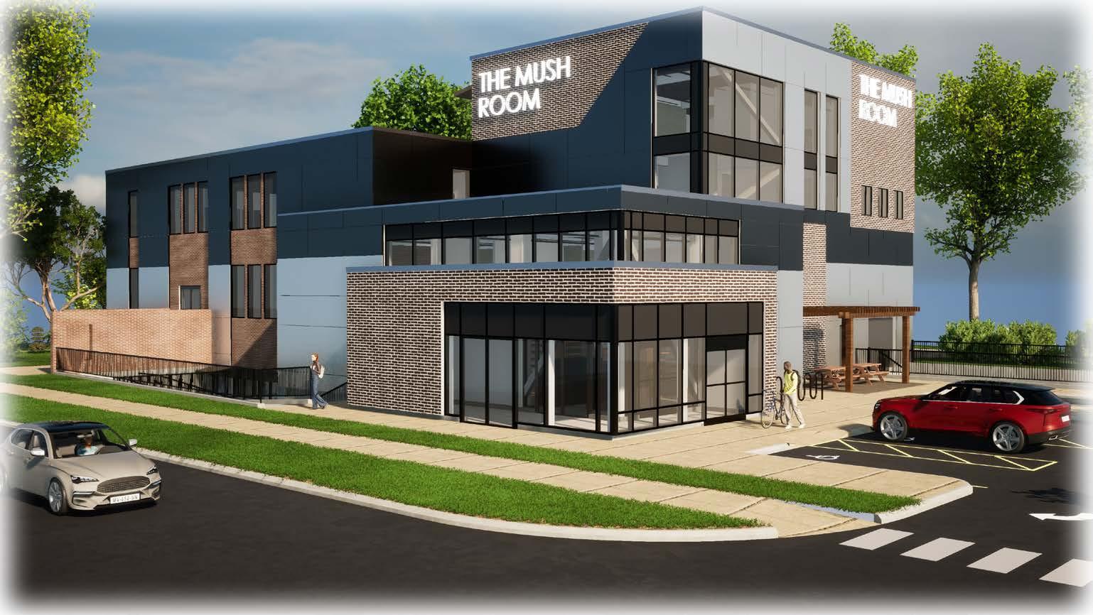 “The Mush - Room” is a contemporary farm market that integrates retail space with specialized back-of-house areas for growing medicinal and gourmet mushrooms.