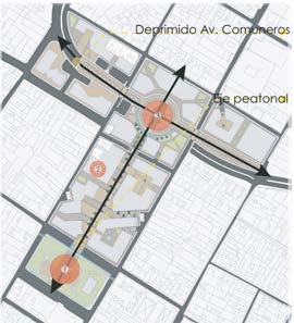 Incorporating all three plazas into the plan resulted in the creation of two primary axis paths. One path is dedicated to pedestrians, while the other traverses Comuneros Street, a significant road in this part of the city. The issue of connectivity arising from the spatial fragmentation
