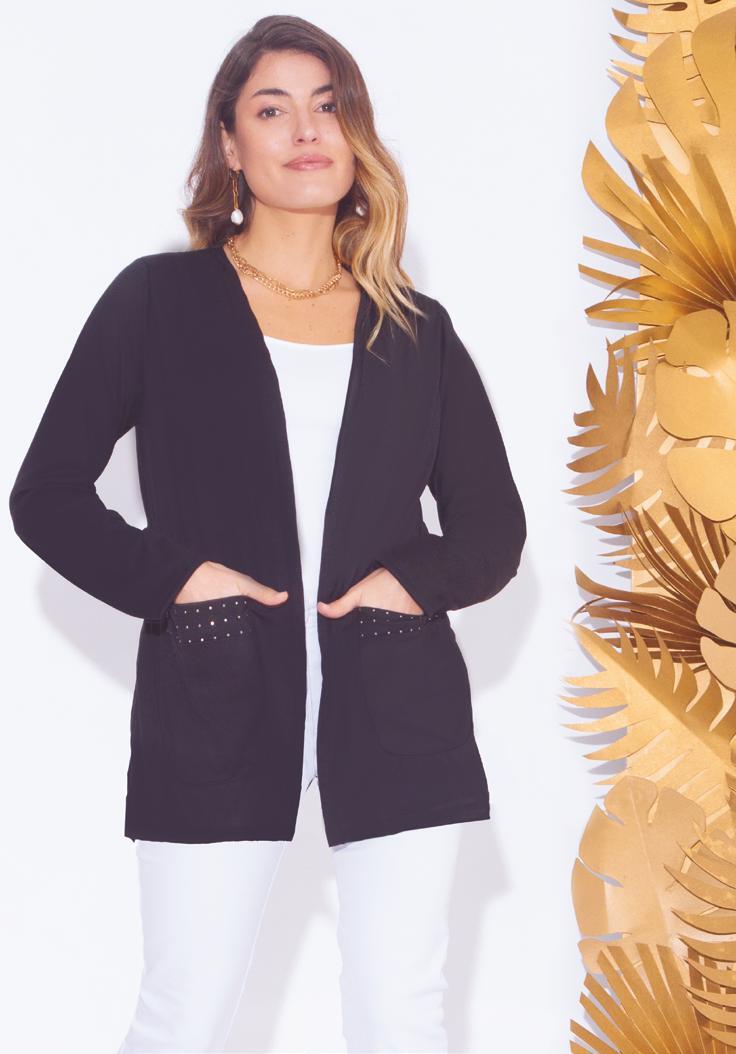 B070-32 Confeccionado en viscosa. Detalle de bolsillos con tachas. Línea clásica.